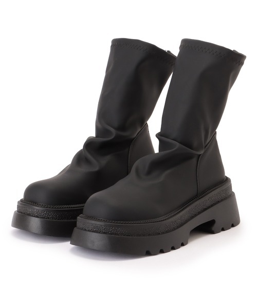 参考商品名:ソリッドカラー 厚底 ラウンド ショート ブーツ