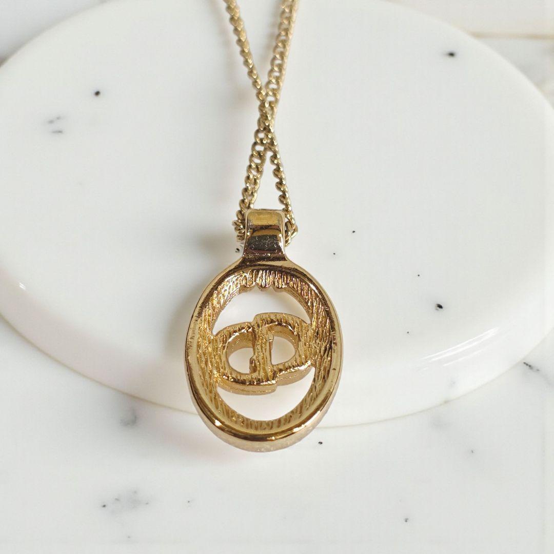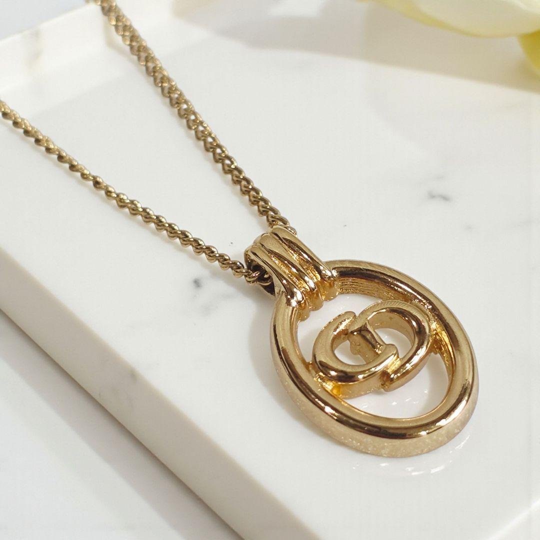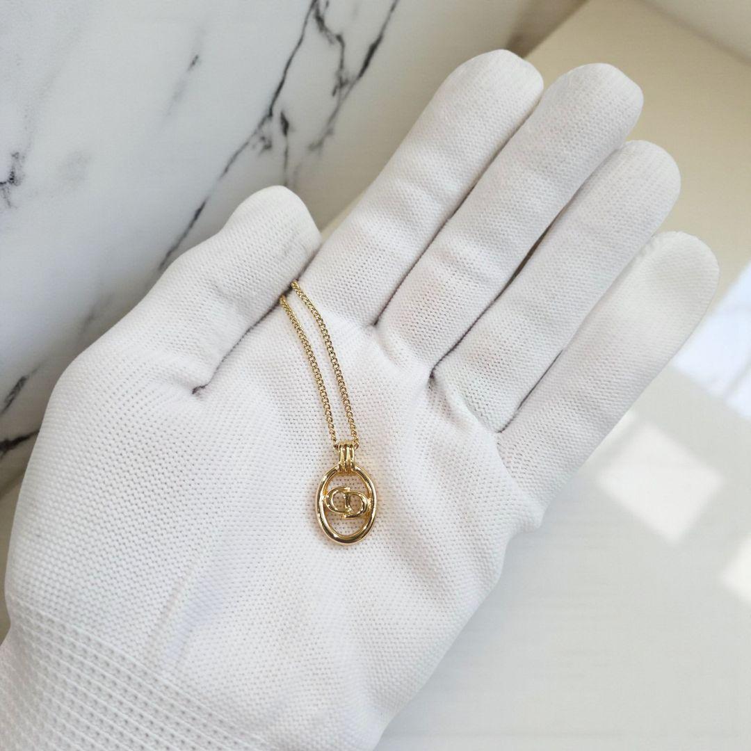 Christian DiorのアイコニックなCDロゴをオーバルフレームに収めたゴールドネックレスです。シンプルで上品なデザインながらも存在感があり、胸元を華やかに演出してくれる人気アイテム。カジュアルからフォーマルまで幅広くお使いいただけます。