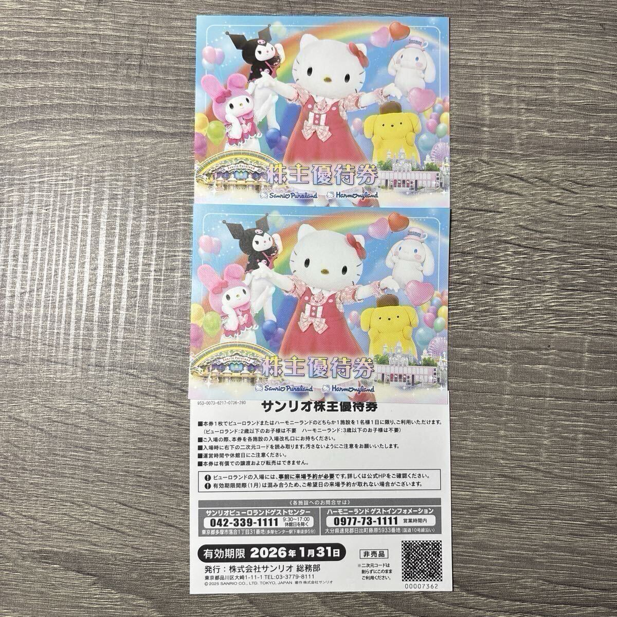 サンリオピューロランドまたはハーモニーランドどちらかに1枚につき1名様ご利用いただけます。