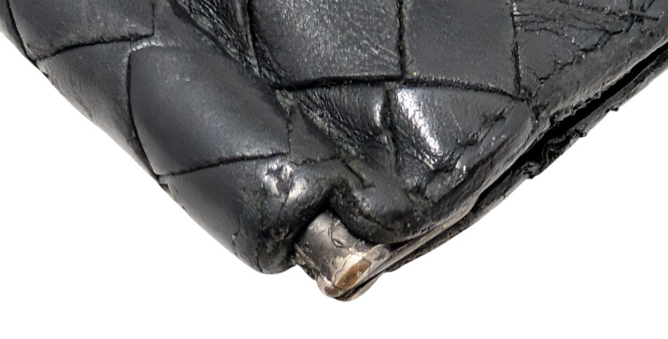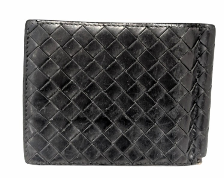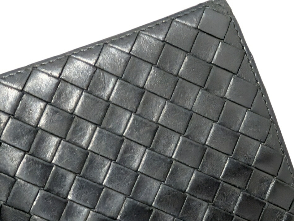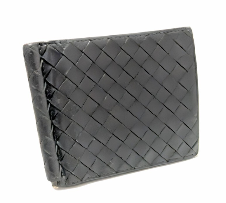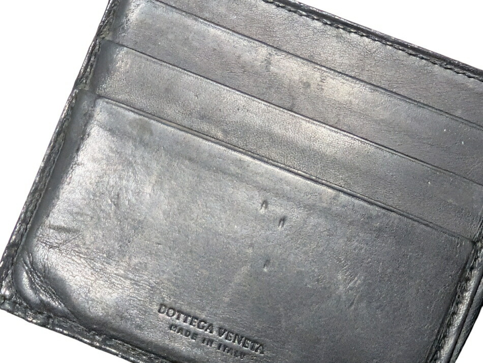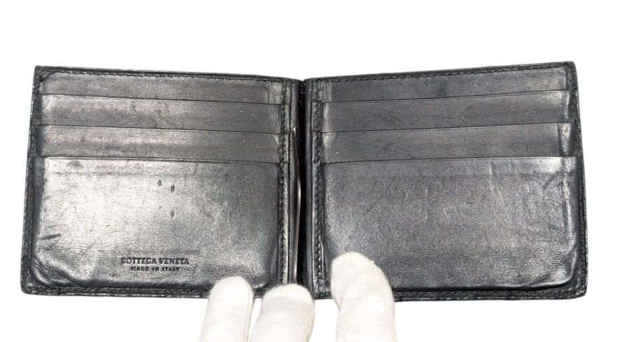 ボッテガヴェネタ 財布 イントレチャート マネークリップ 札入れ レザー ブラック 二つ折り BOTTEGAVENETA 【中古】
