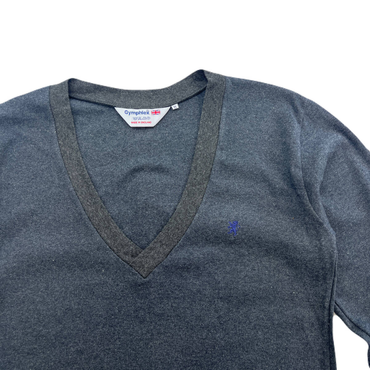 ジムフレックス Vネック トップス ロングTシャツ 薄手 グレー Mサイズ メンズ ●BK211