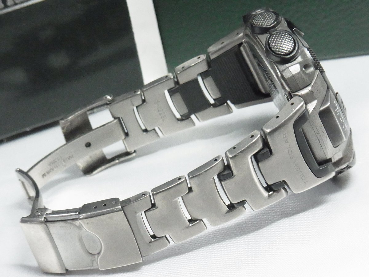 | 商品説明 | カシオ CASIO ※裏蓋ネジ本欠け ・プロトレック ・PRW-1500TJ 3132 ・トリプルセンサ― ・メンズ 腕時計 ・クオーツ デジタル デイデイト クロノグラフ センサー ラウンド ・ステンレススチール ・本体シルバー 文字盤グレー系 ・純正ベルト ■動作■ 動作: OK 機構: クオーツ QZ デジタル リューズ、ボタン: OK 時刻操作: OK 日付曜日操作: OK ベゼル操作: OK ベルト関連: OK ライト: OK クロノ: OK アラーム: OK ■傷状態■ 風防: クスミ、スレ傷 針: なし 文字盤: 良好 べゼル: 小傷、スレ傷、クスミ リューズ、ボタン: 小傷、スレ傷、クスミ ケース: 小傷、スレ傷、クスミ、裏摩耗箇所あり、裏腐食箇所あり 裏蓋: スレ傷、クスミ ブレス: 小傷、スレ傷、クスミ 尾錠: 小傷、スレ傷、クスミ 他: 特になし ■サイズ■ ケース幅: 52㎜(リューズ除外) ラグ幅: 18㎜(ベルト幅 18-26㎜) ブレス腕回り: 15.5㎝ ■状態■ ランク:B 外観:B 内側:B ■付属品■ 箱: あり 付属品: なし 他: なし ■管理番号■ B31831 |