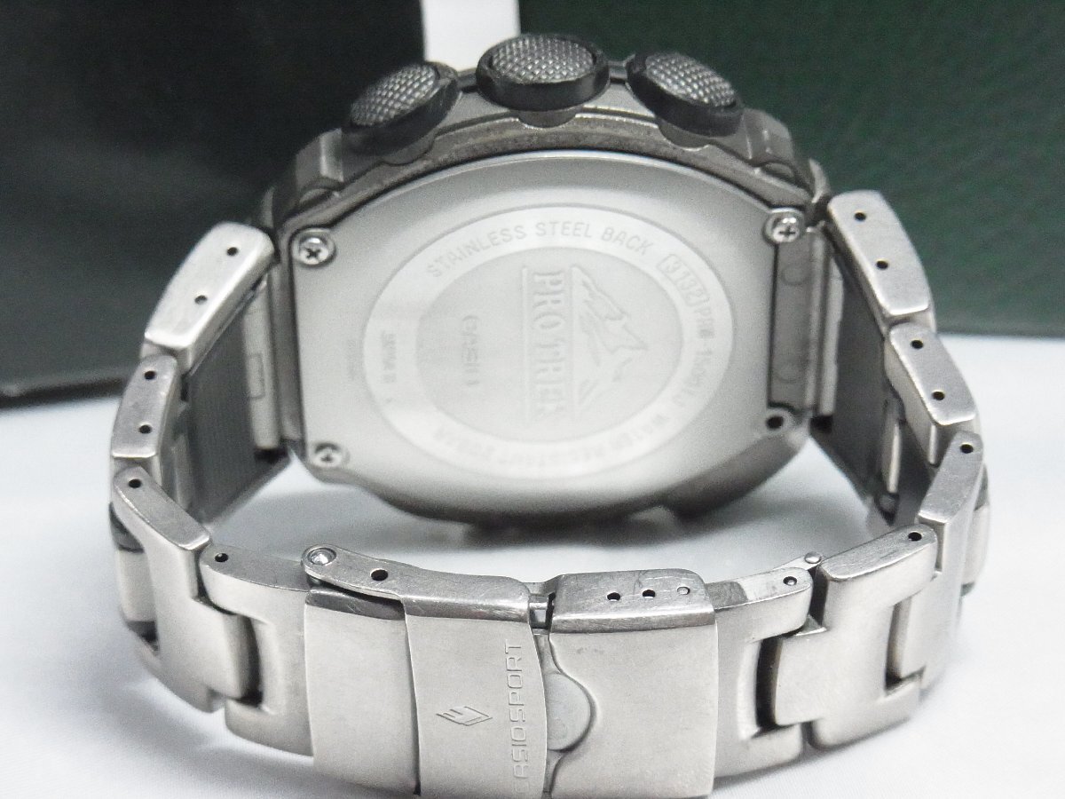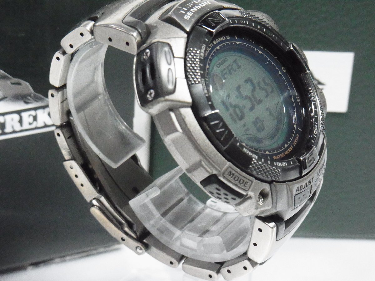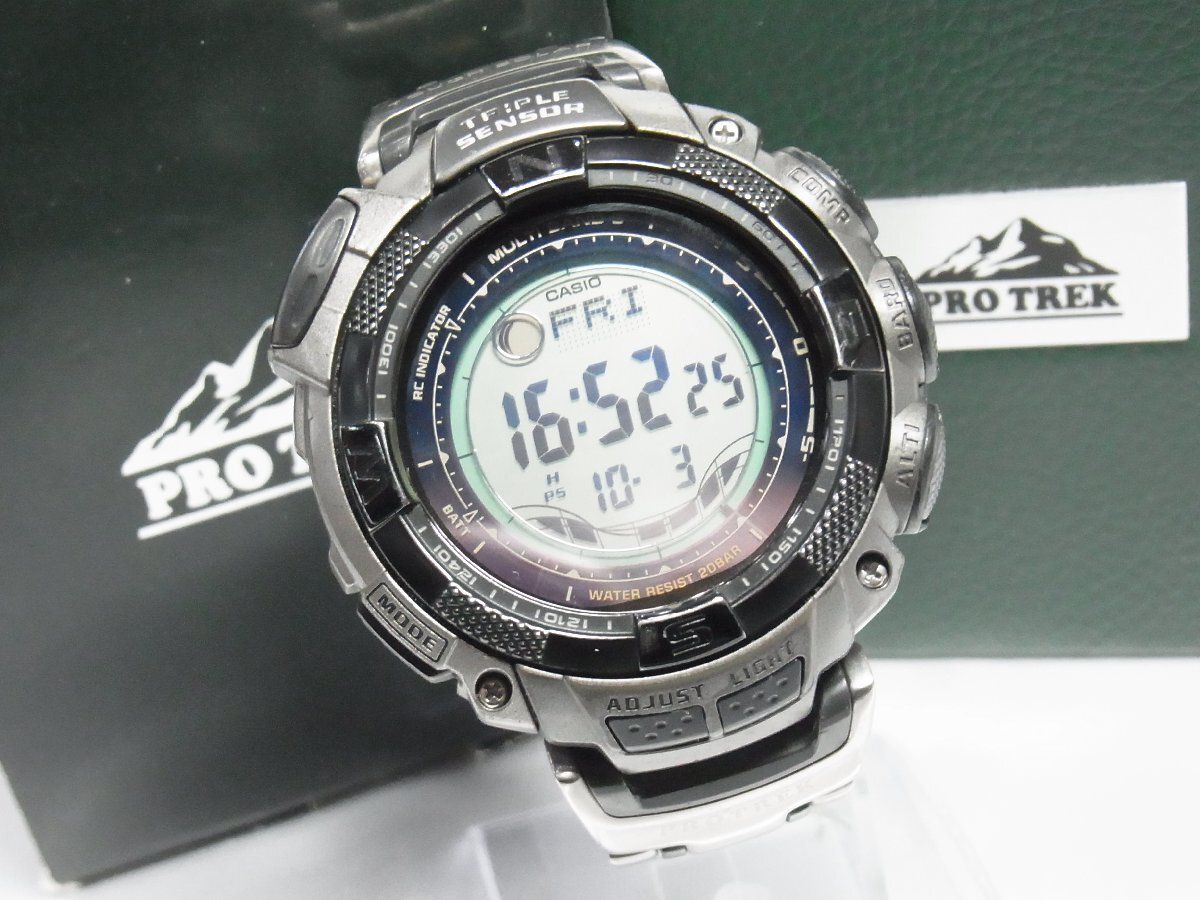 | 1円~【稼働・箱】カシオ CASIO プロトレック PRW-1500TJ 3132 トリプルセンサ― メンズ 腕時計 クオーツ デジタル デイデイト クロノグラフ センサー ラウンド SS 本体シルバー 文字盤グレー系 純正ベルト | |