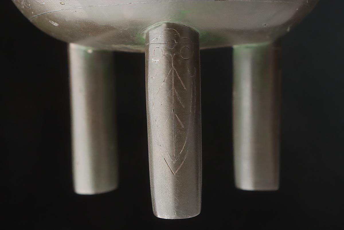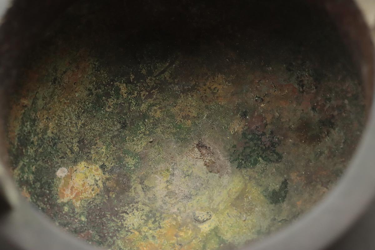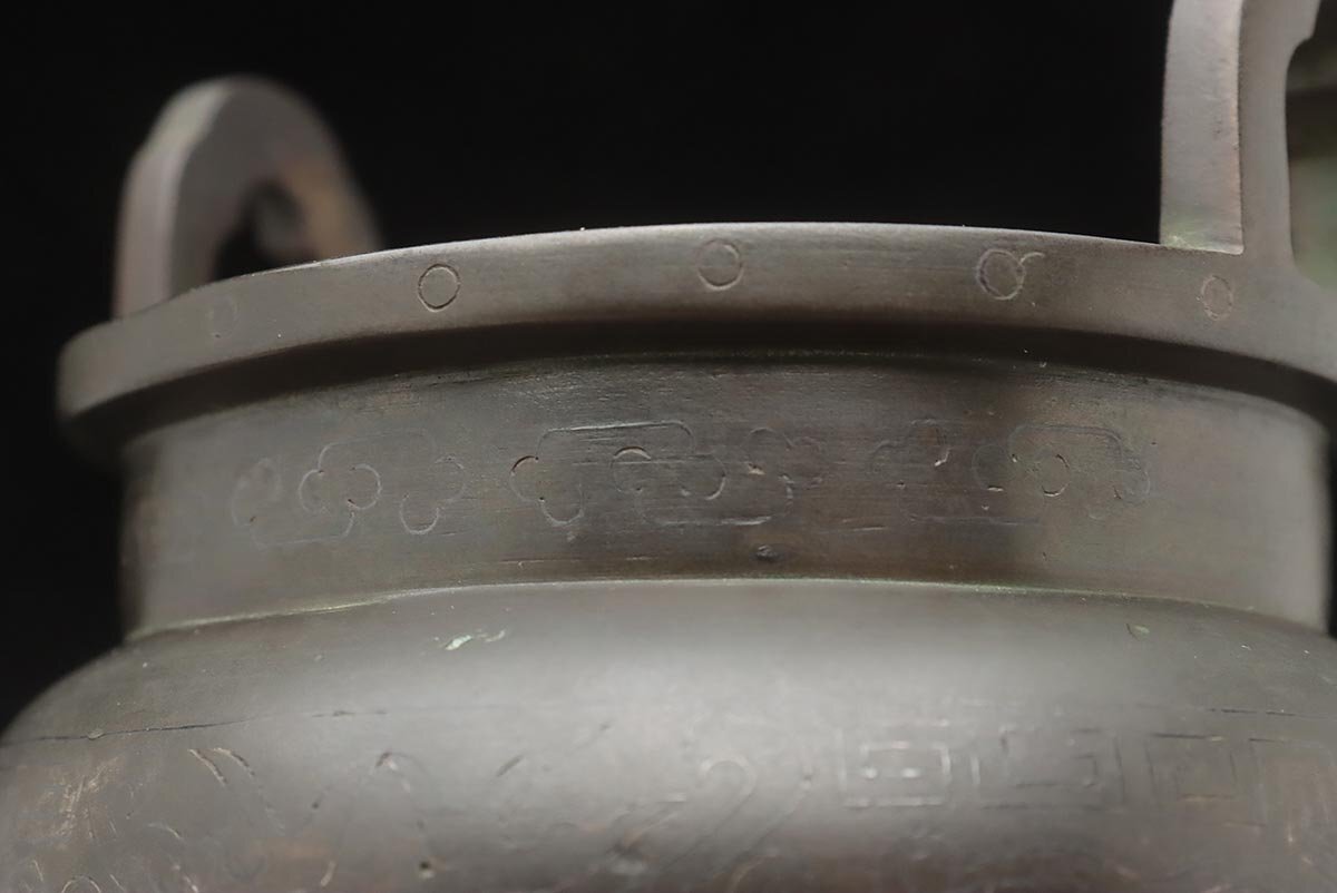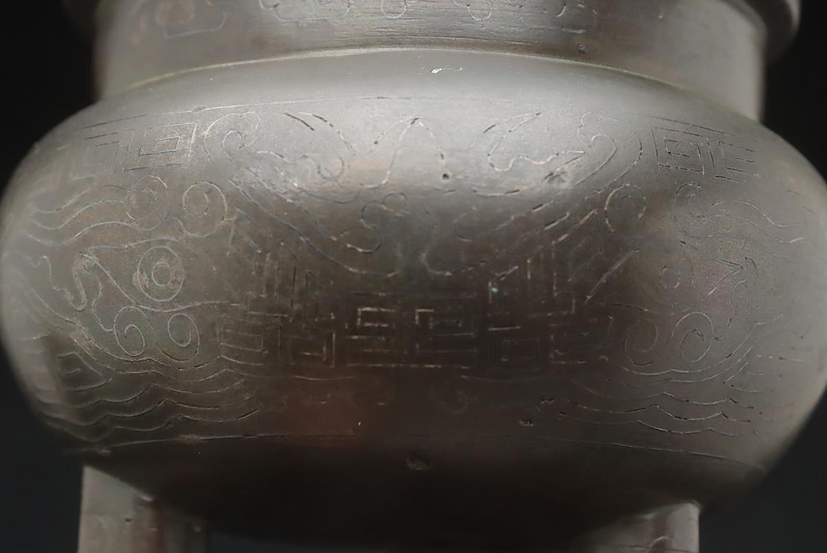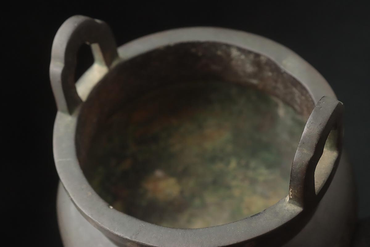 ◆ 中国美術 清時代 古銅 銅嵌銀絲饕餮紋三足鼎式炉・銅銀象嵌饕餮文双耳三足香炉 高15cm 重790g 中国古玩 検)石叟 ◆
