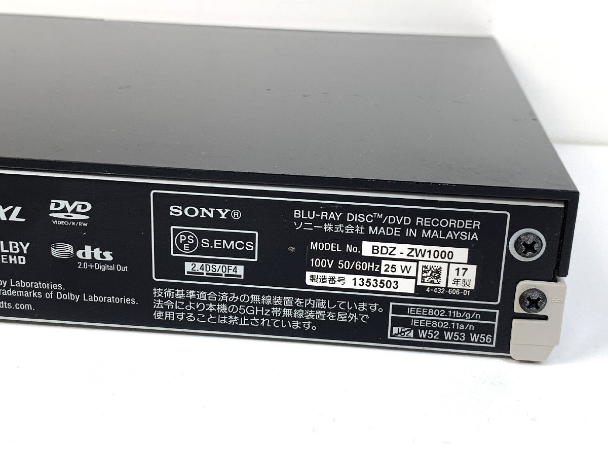 【ジャンク品】SONY BLU-RAY DISC/DVD RECORDER BDZ-ZW1000 ソニー ブルーレイ ディスクレコーダー 2017年製 付属あり st10-25 |