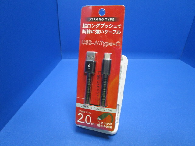オズマ OSMA USB-A to Type-C 3A 超ロングブッシュで断線に強いタフケーブル 2m ブラック UD-STCSS200K [ Quick Charge対応 ]