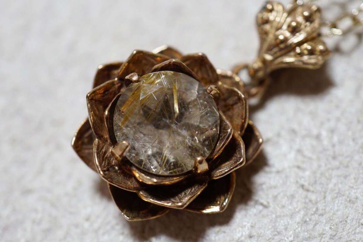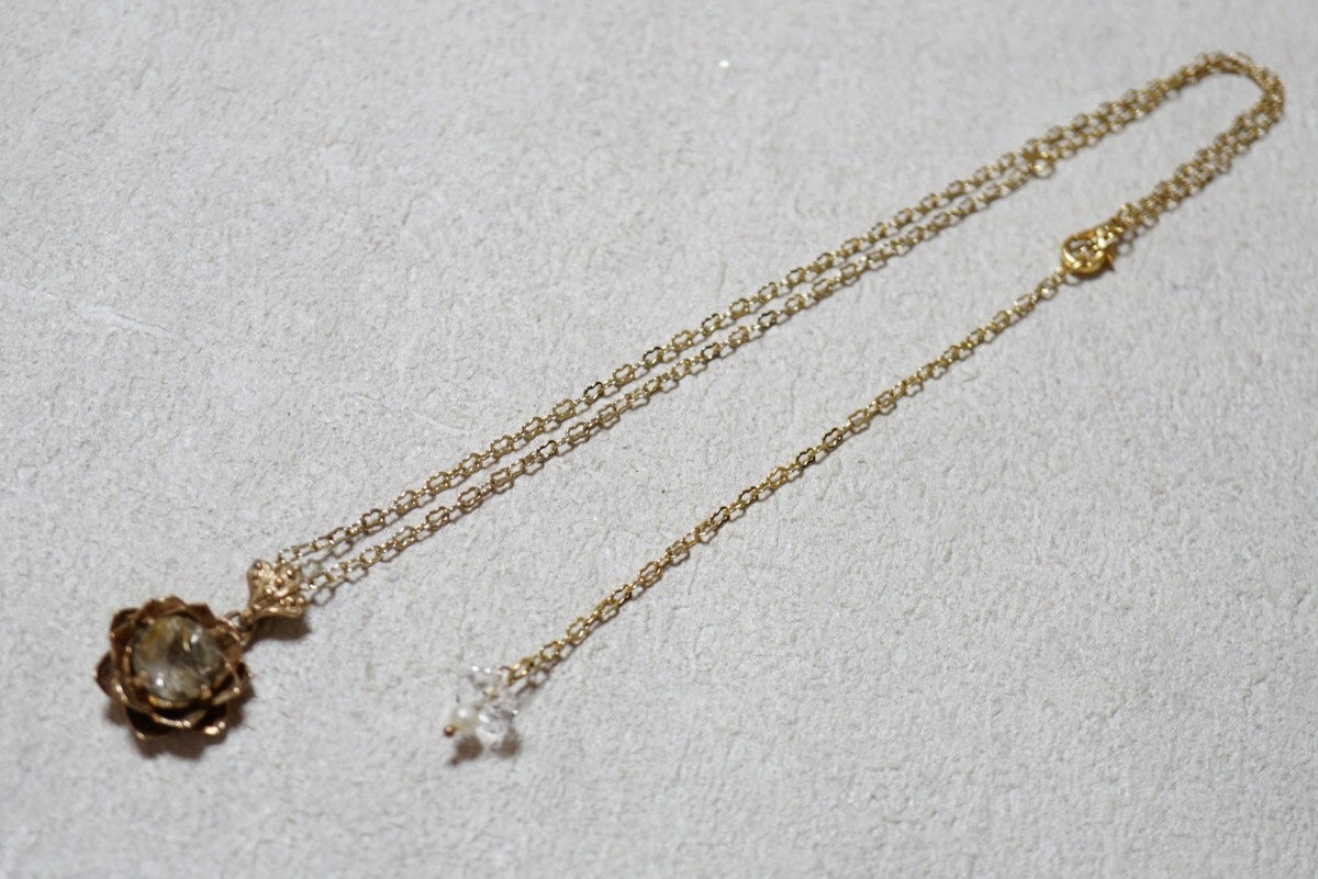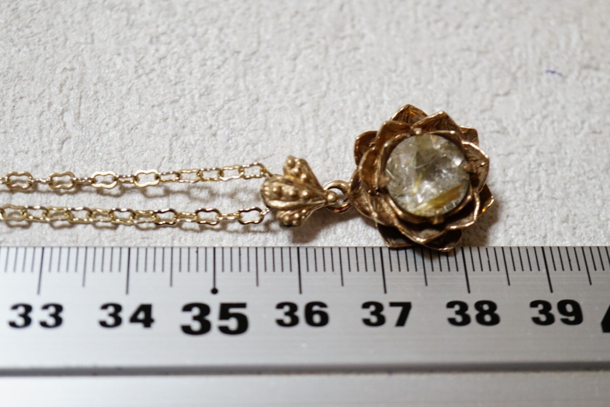 159 天然ルチルクォーツ ゴールドカラー ペンダント ネックレス ヴィンテージ アクセサリー 天然石 宝石 色石 カラーストーン 装飾品
