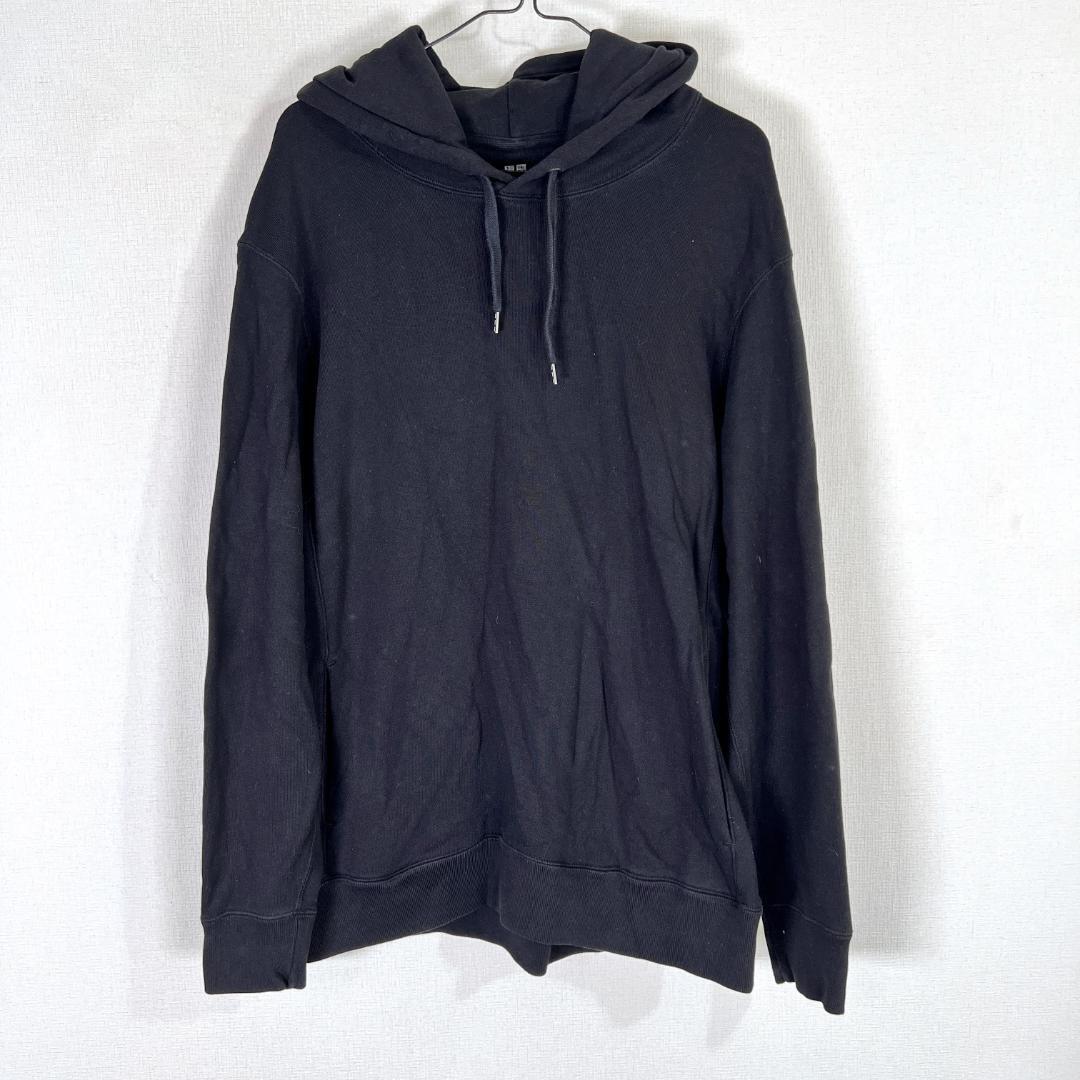 男性用の黒 ブラック系の長袖パーカーです。中古品ですが目立つような傷や汚れもなくまだまだ使っていただけます。古着 ユニクロ UNIQLO