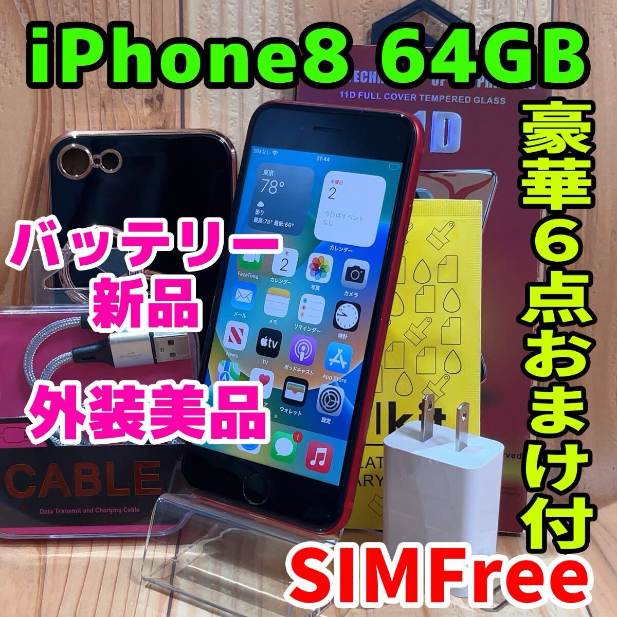 バッテリー新品 iphone 8 simフリー 本体 64gb レッド