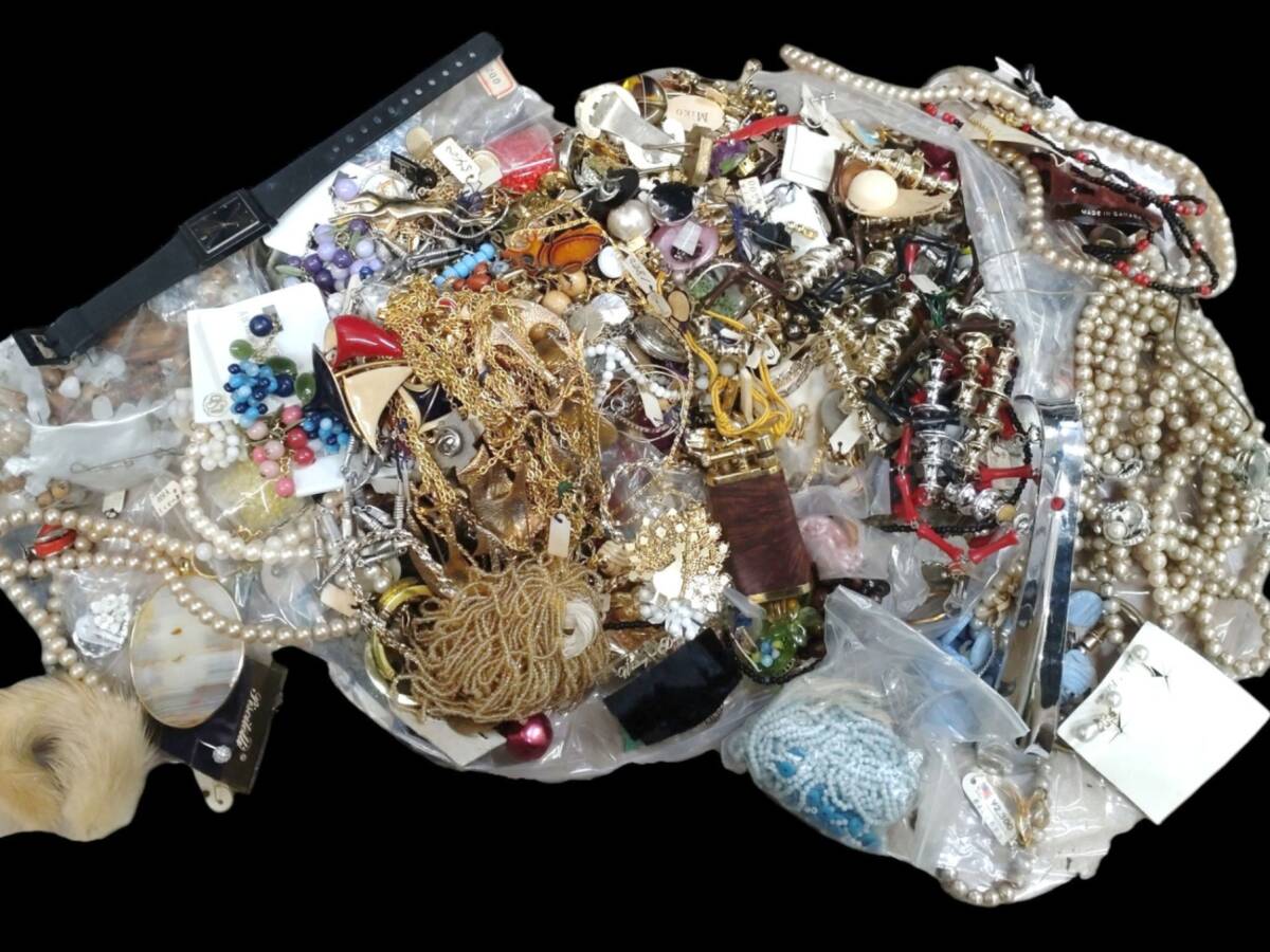 【商品名】 ◎ 1円スタート イミテーション まとめ 大量 約3.5㎏ フェイク パール ストーン シルバー ネックレス ブローチ イヤリング ブレス カフス タイピン ピアス その他 アクセサリー 1999990 |