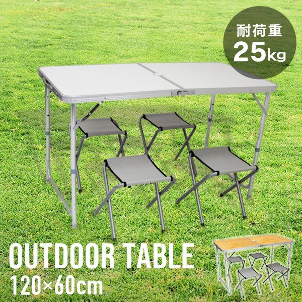 軽量アルミ製+取っ手付きで気軽に持ちだせる、 アウトドアやBBQにぴったりのテーブル&チェアセットです。 テーブルの中に椅子を収納することで、車のトランクに入れる時や持ち運びの時に便利です!! 組み立てはとっても簡単! 開いてロックするだけの簡単設置タイプなので、女性一人でも気軽に組立てができます。 高さは「ハイスタイル」「ミドルスタイル」「ロースタイル」の3段階調節。 お好みや用途に合わせて使い分けることができる嬉しい仕様♪ 天板中心部にはパラソル用ホールがあるので、ベランダやテラスでの使用にもおススメです♪ キャンプ、バーベキュー、お花見などにとても便利! ■商品仕様■ 折りたたみ式 テーブルサイズ(約):幅120×奥行60×高さ55cm/62cm/70cm ※高さ3段階調節 カラー:バンブー 収納サイズ(約):幅60×奥行7×高さ60cm チェアサイズ(約):幅33×奥行29×高さ35cm パラソル用ホール直径サイズ(約):26mm 耐荷重(約):テーブル/25kg、チェア/70kg 重量(約):6.7kg 材質:アルミ、MDF(耐熱・耐水加工)、ポリエステル、スチール ■商品内容■ ・テーブル ×1 ・チェア ×4 ■注意事項■ ・海外製品で、簡易梱包での輸入のため風防に擦れや多少の小キズなどがある場合がございますが、商品自体には問題ありませんのでご了承下さい。 ・商品は、モニターによって色合いが異なって見える場合があります。 ・仕様・デザインは改良のため予告なく変更することがあります。 商品コード:A61120D |