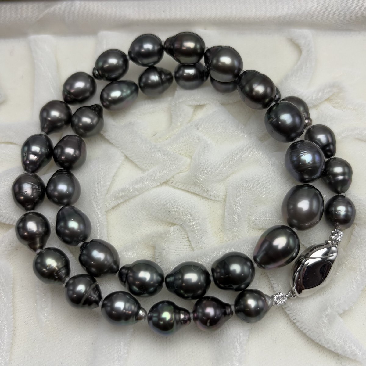 希少!オーロラピーコック カラー ネックレス 8.0-9.5mm 黒蝶真珠 クロチョウ Pearl necklace 照り強 本真珠 【1660388-1002】