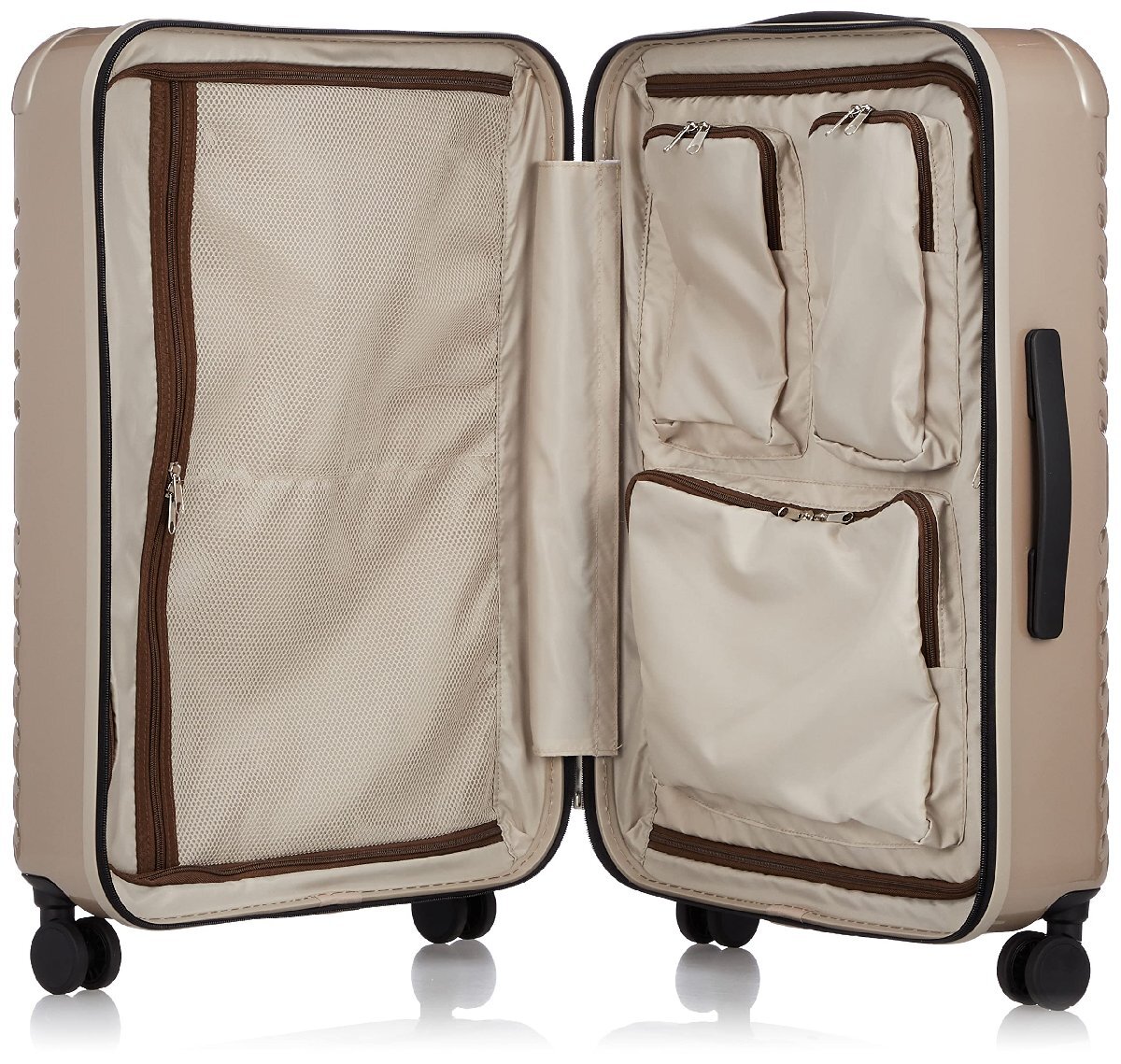 ブランド:ACEカラー:ベージュサイズ:1個説明ACEからファースナータイプのスーツケースがデビュー。上品な光沢感のある鏡面ボディの4色展開、男女兼用でお使い頂けるデザインになっています。●走行スムーズな双輪キャスター●身長やシーンにに合わせてお使い頂けるシステムハンドル●ダイヤル式のTSAロック搭載●内装は両面カバー付きの為、不意に開けた時に荷物の中身が見える心配がありません。●内装にはマチがついている収納ポケットを大小3つ搭載。ばらばらとしがちな小物をしっかりと収納します。●サイドハンドル&グライド付。持ち運びに便利です。【外寸】H67×W47×D26cm