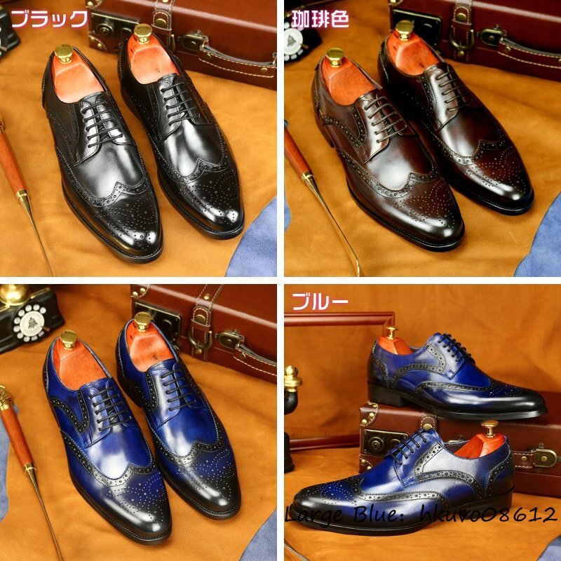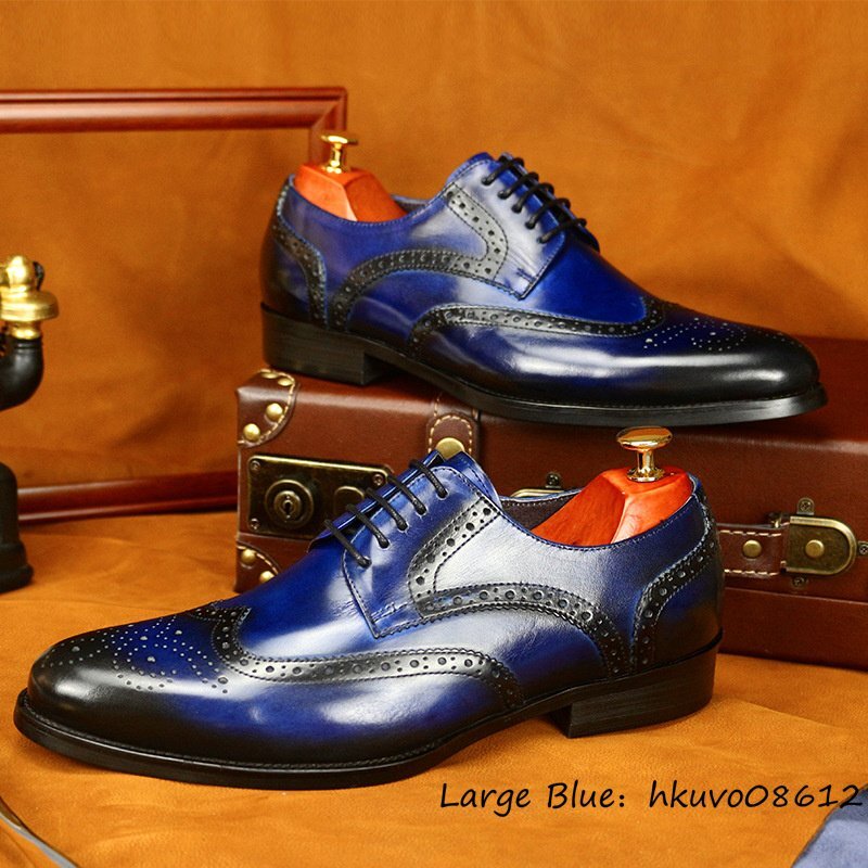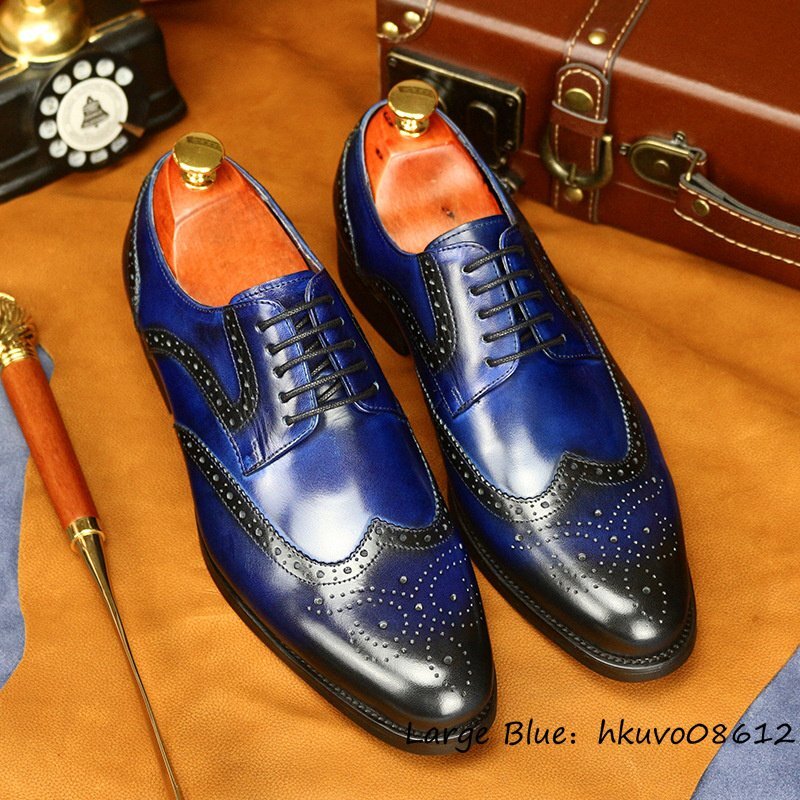 定価10万■超美品 ドレスシューズ 本革 メンズシューズ 職人手作り ビジネスシューズ 紳士靴 革靴 本牛革 レザーシューズ ブルー 25.0cm