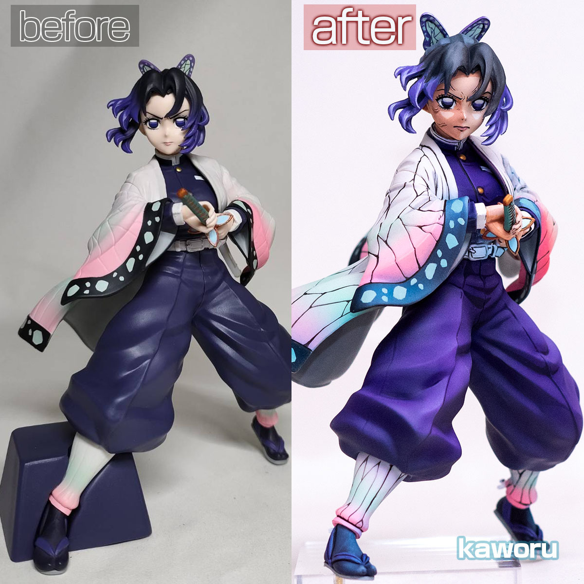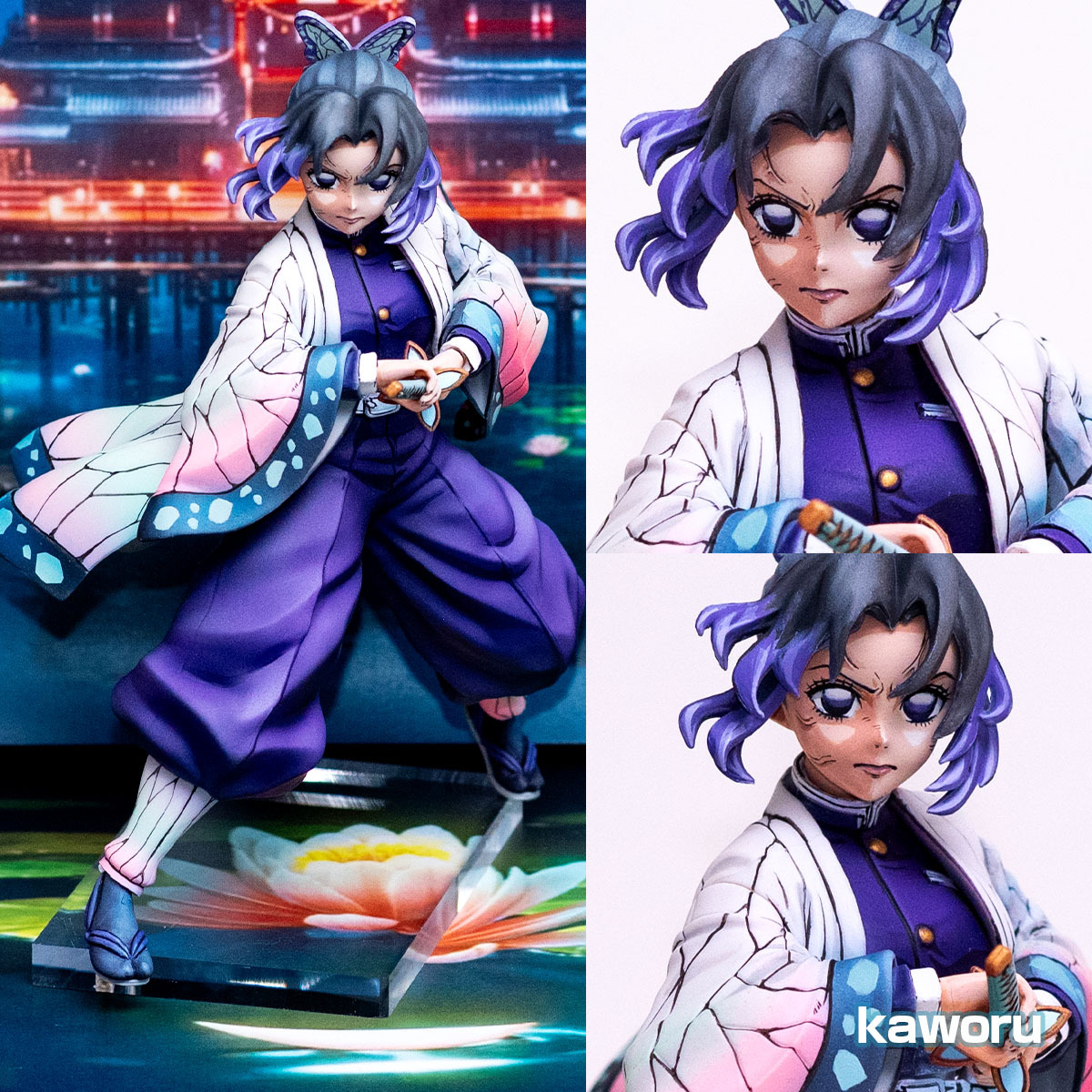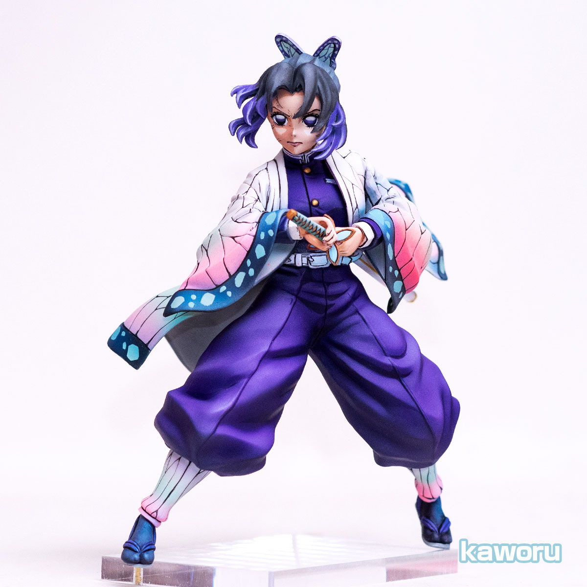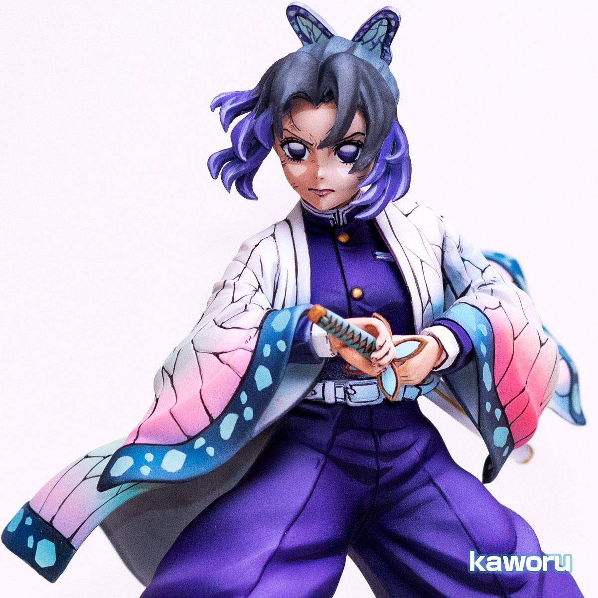 今回はイラスト風2Dにてフルリペイントした鬼滅の刃 蟲柱 胡蝶しのぶ のフィギュアの出品です。