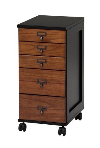 即決可@新品天然木キャスター付きチェスト5段/ブラックブラウン | ||||||||||||
