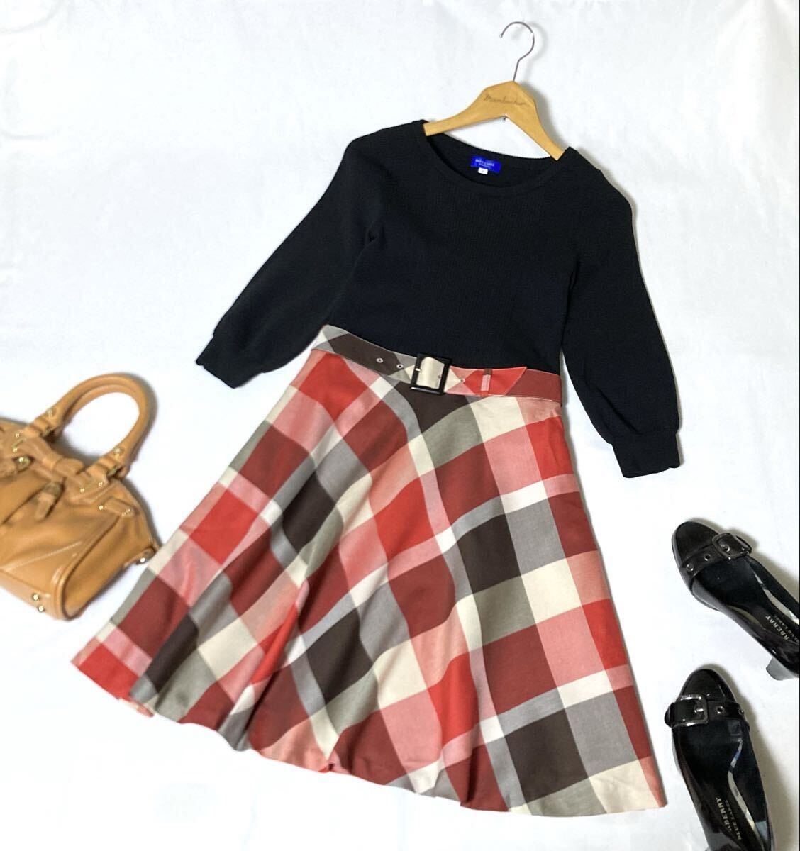 ブルーレーベルクレストブリッジ チェックのスカートが可愛いドッキングワンピース 38 送料230円♪