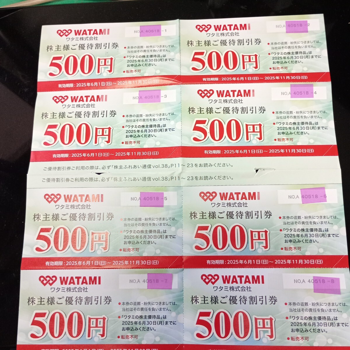 ワタミ 優待券 500*8=4000円分 有効期限2025/11/30 使い方のわかる方限定 優待品への交換はできません。