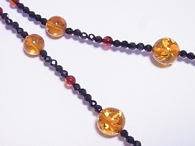 | 【1点限りになります】 使用石 : 天然琥珀 : 約10mm 8mm 4mm ※天然琥珀特有のグリッターには個体差があります。 天然ブラックスピネル カット 約3mm ※カットを施した高品質な天然ブラックスピネルを使用しています。キラキラ輝き、とても綺麗です。 ※天然石のため、わずかに傷など確認できる玉もあります。 長さ : 約120cm 2連や3連にしてお楽しみください 留め金 : 引き輪式 シルバー925(ロジウム・コーティング) 【備考】 誠に勝手ながら、土、日曜日、祝日、長期休暇は、 発送業務をお休みさせていただいておりますので、ご了承下さい。 画像はサンプル画像ですが、サンプル画像と遜色のない商品をお送りします。 出来るだけ実物に近い画像を使っておりますが、実物と多少色が異なる場合がありますので、ご了承下さい。 環境に配慮して、必要以上の梱包をしておりませんのでご理解下さい。 基本的にはチャック袋等に商品を入れ、緩衝材で壊れないように保護してお送り致します。 プレゼント梱包はご対応しておりませんので、ご了承下さい。 スムーズなお取り引きを心掛けておりますが、仕事の都合上、ご返信、発送等に 多少お時間を頂く場合もあるかと思いますが、ご理解の程、よろしくお願いします。 ノークレーム、ノーリターンでお願い致します。 | |||