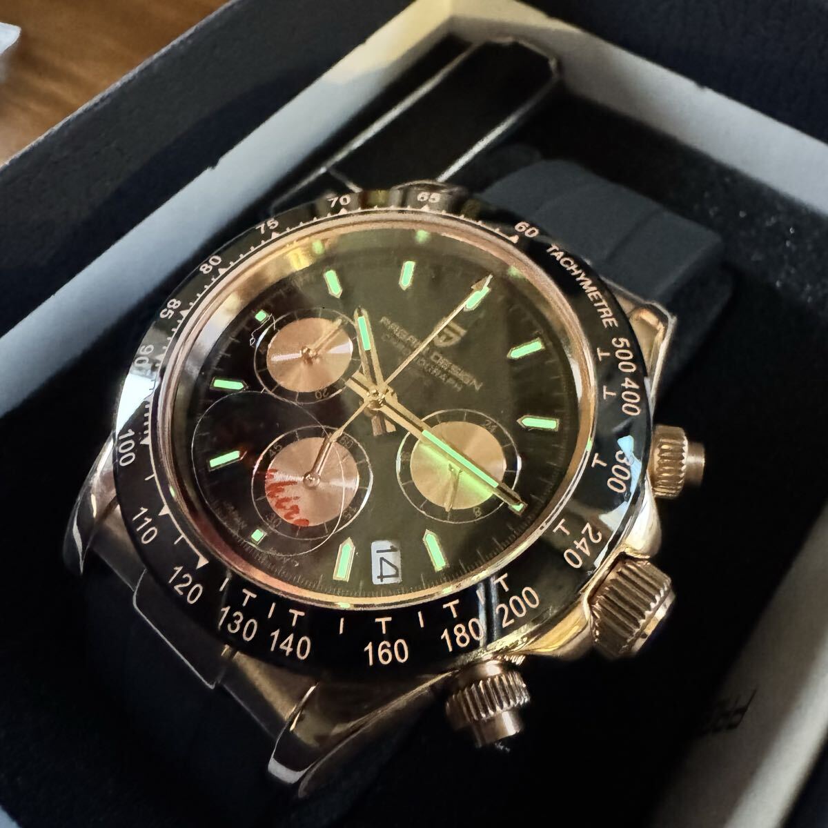 ・機能:クロノグラフ、デイト表示、タキメーター