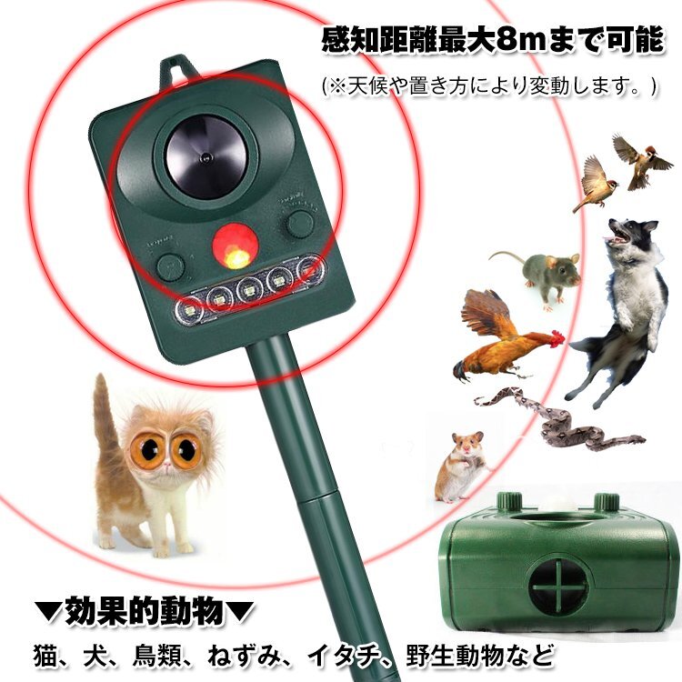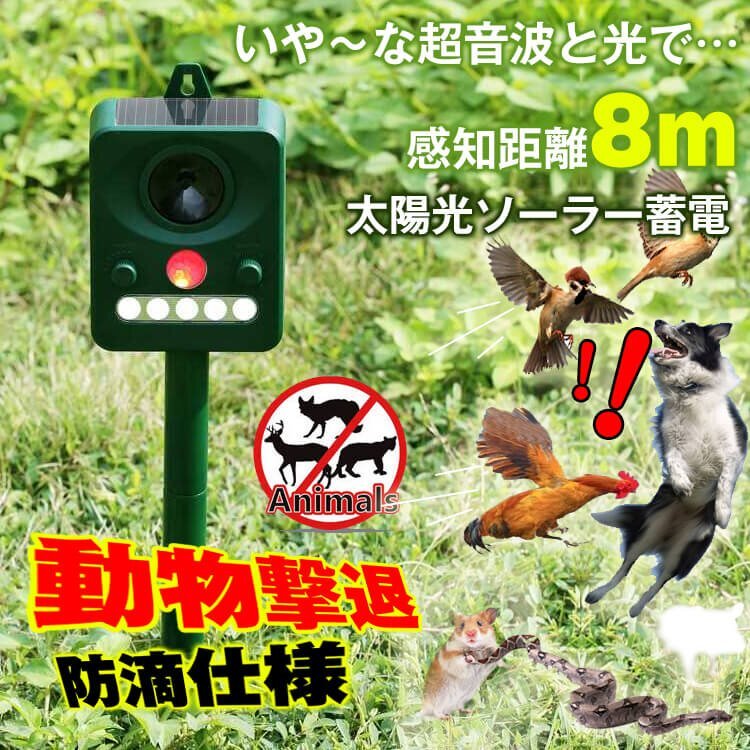 送料無料 動物よけ 猫よけ 超音波 ソーラー充電式 電源不要 犬よけ 鳥よけ 撃退 対策 防滴仕様 害獣 音 光 煙なし 臭いなし 超音波 sl016