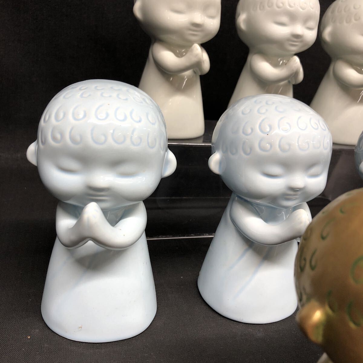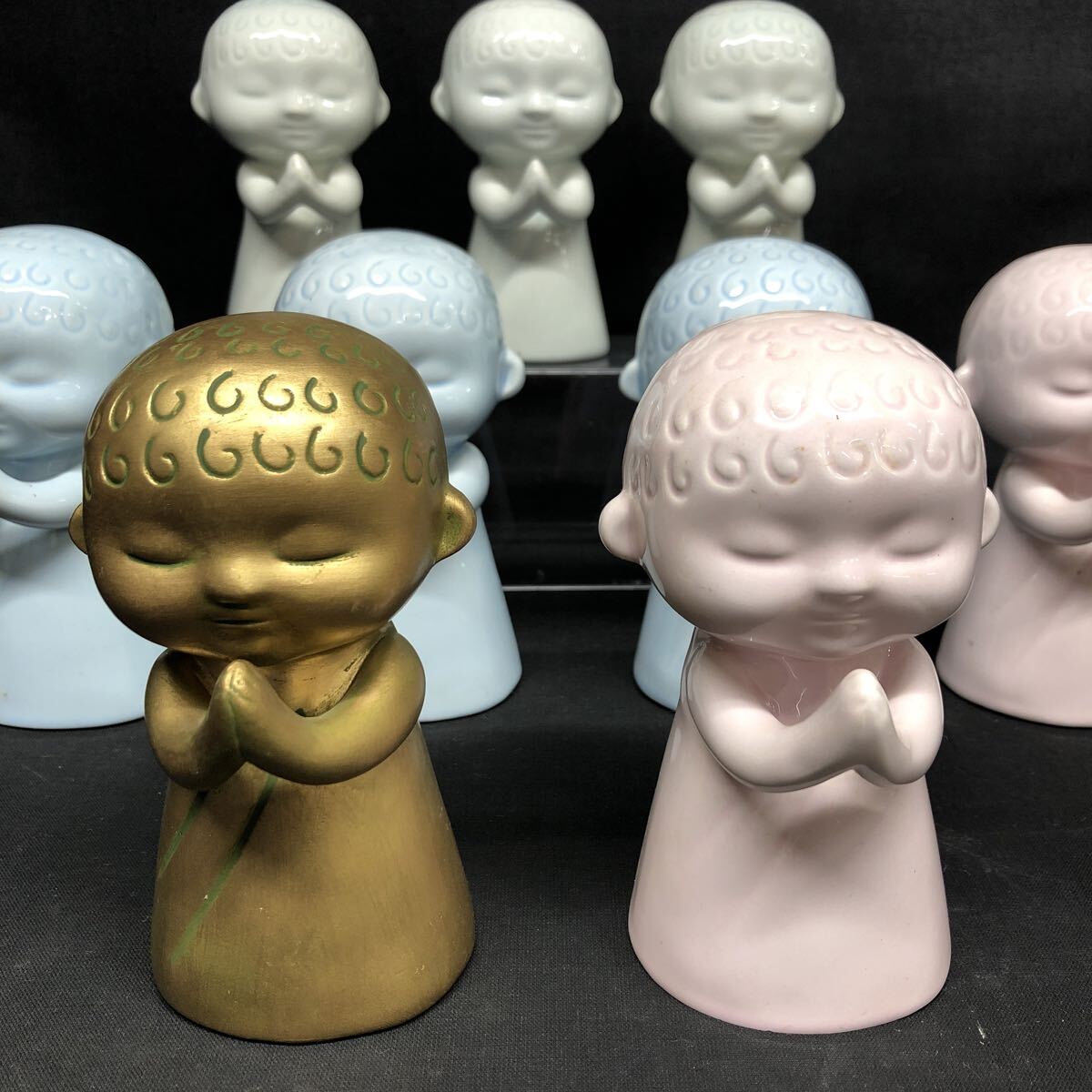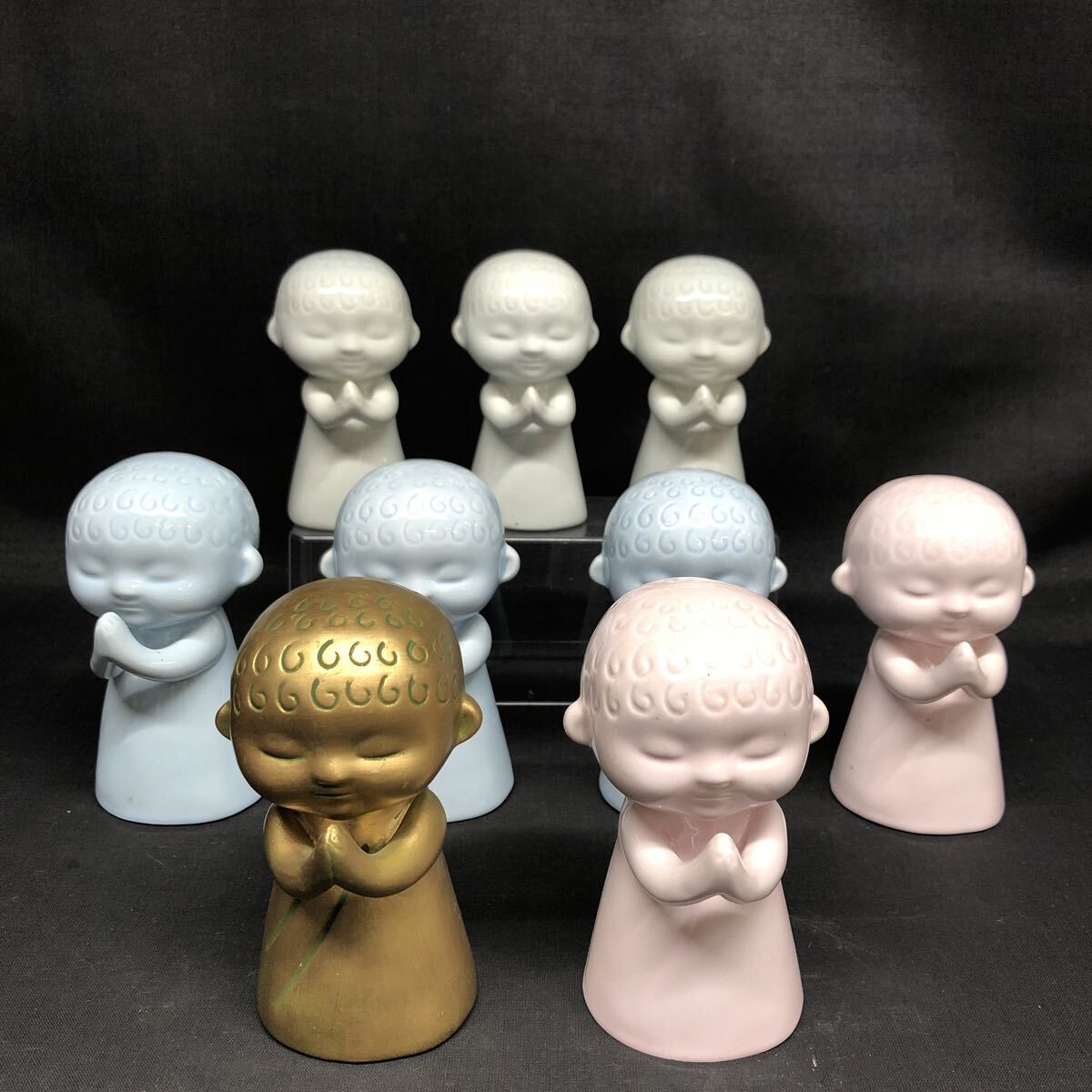Y2260 【 合掌人形 9体 】すずき出版 ゴールド 水色 ピンク 薄緑 大小 仏教 ののさま 仏様 陶器製