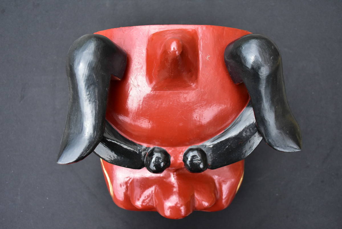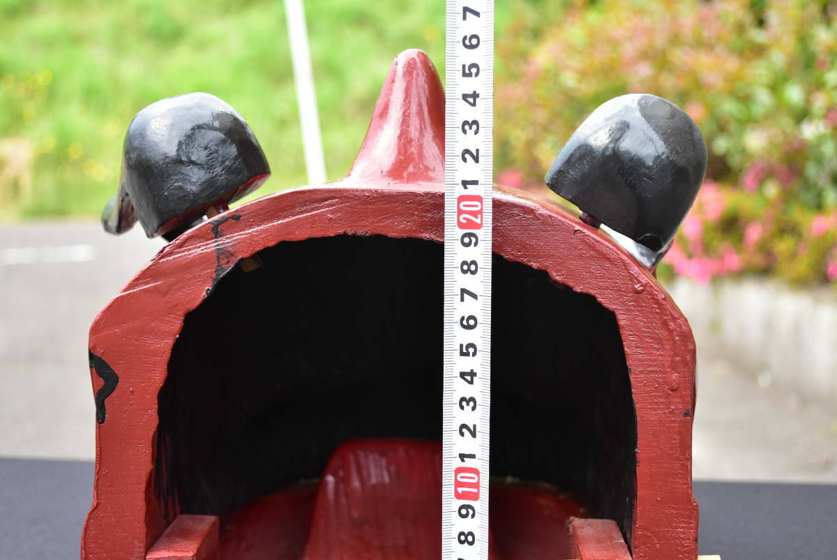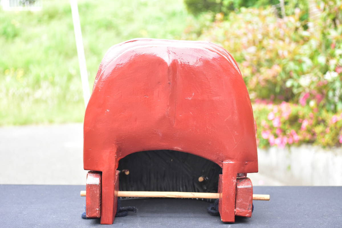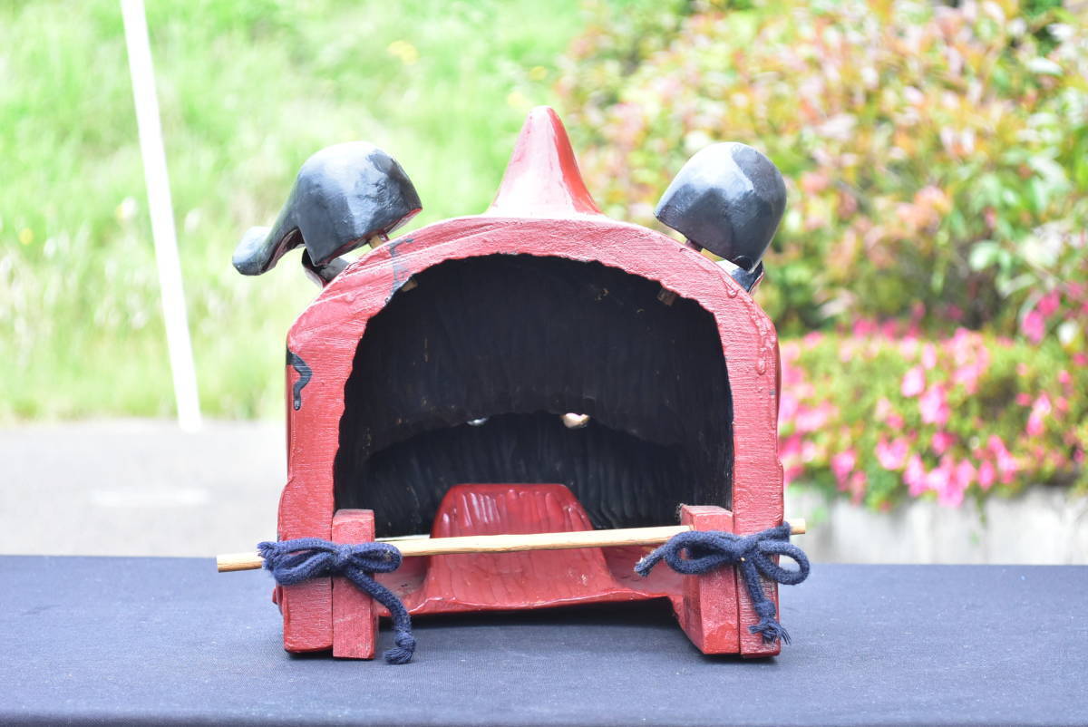 獅子舞 獅子頭 木彫り 横23cm 高さ26cm 奥行き26cm 重さ2kg 神楽面 祭礼 神具 昭和期