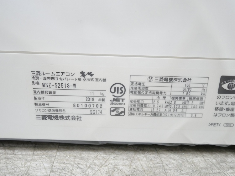 【未使用品】【室内機のみ】三菱製/ルームエアコン/8畳用/MSZ-S2518-W(7092776-1/3)