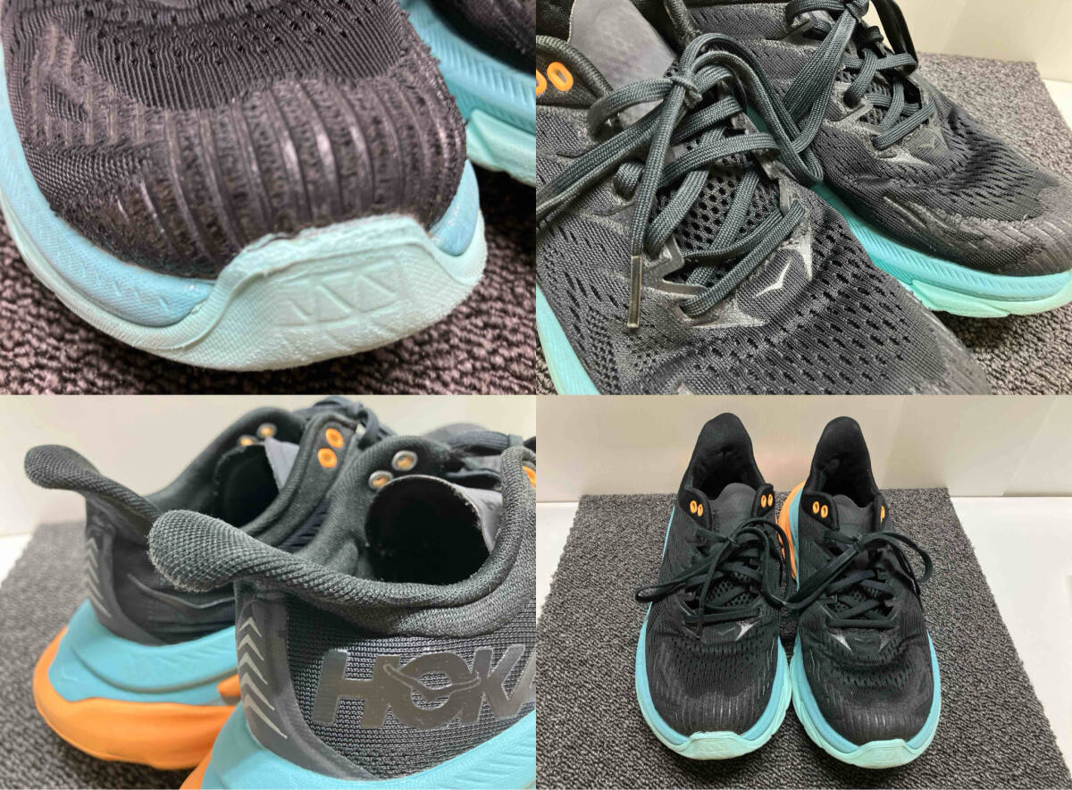 ソールやアッパーに擦れや汚れがございます。 若干の型崩れが見られ使用感がございます。 |