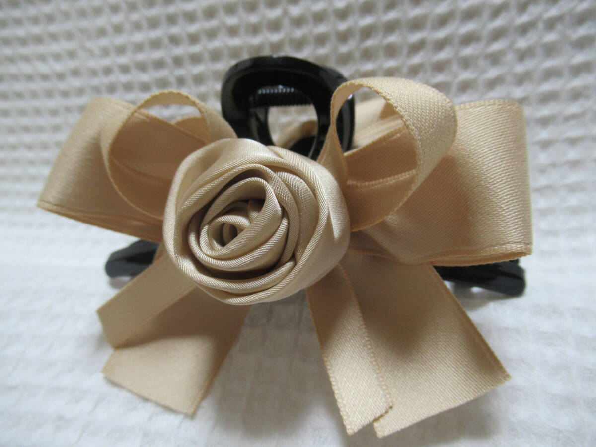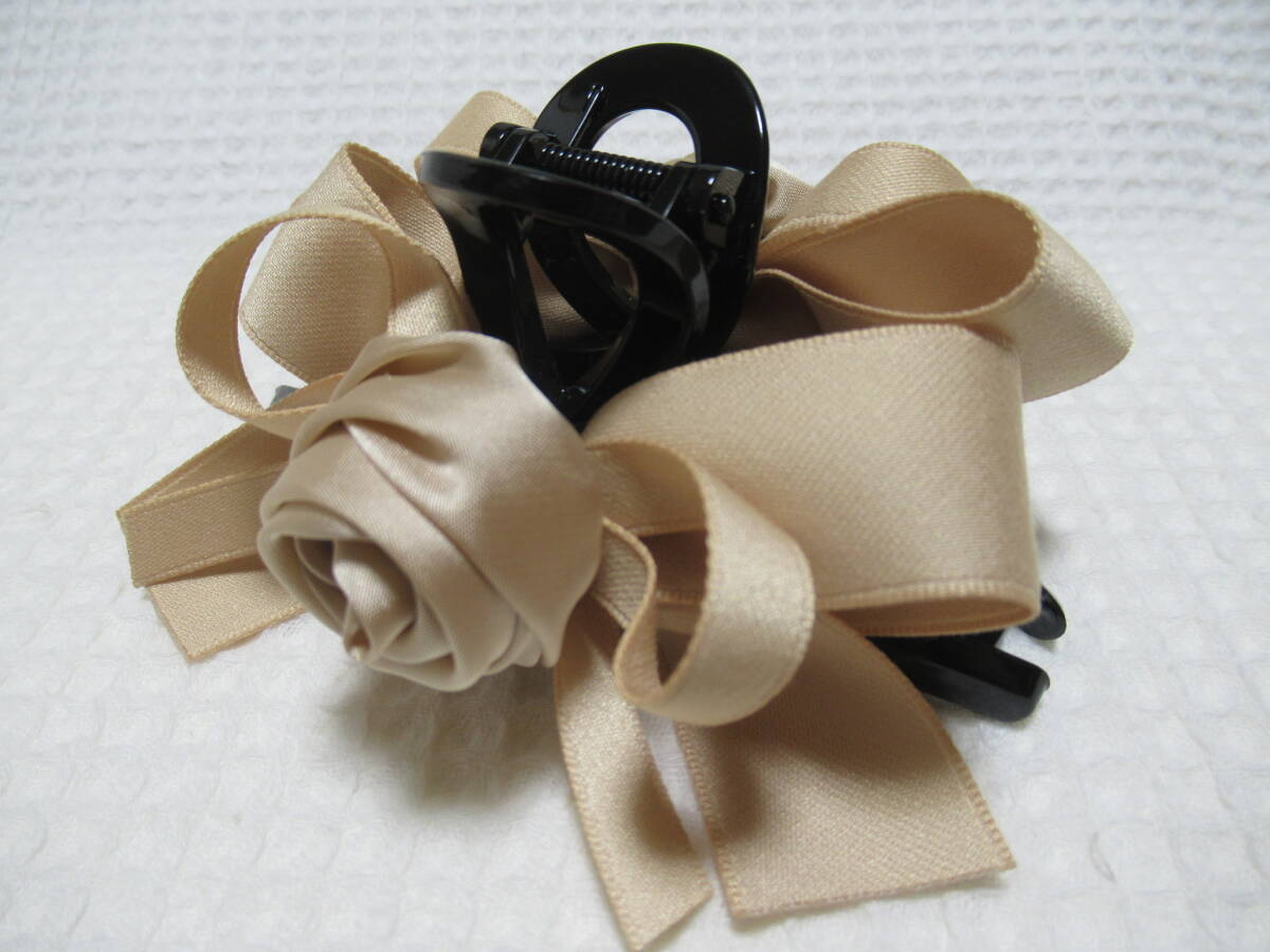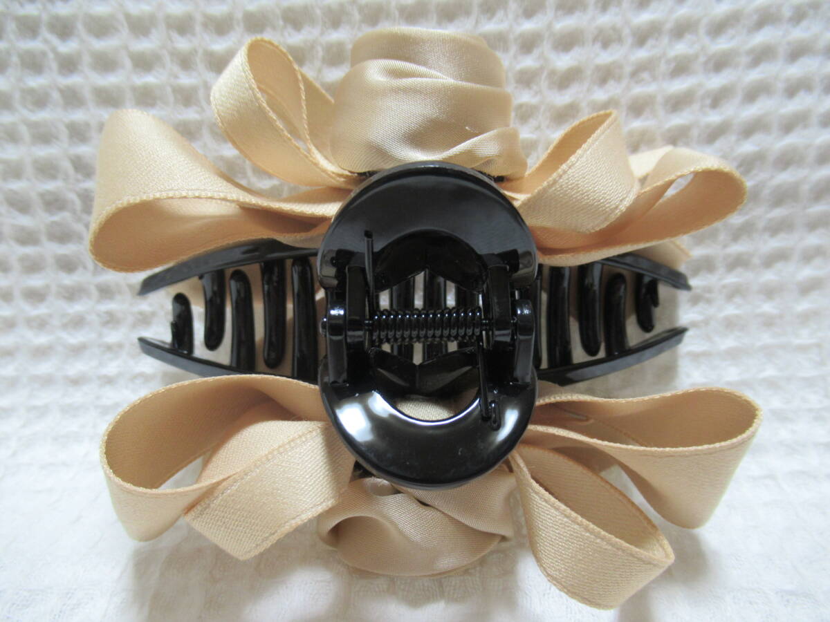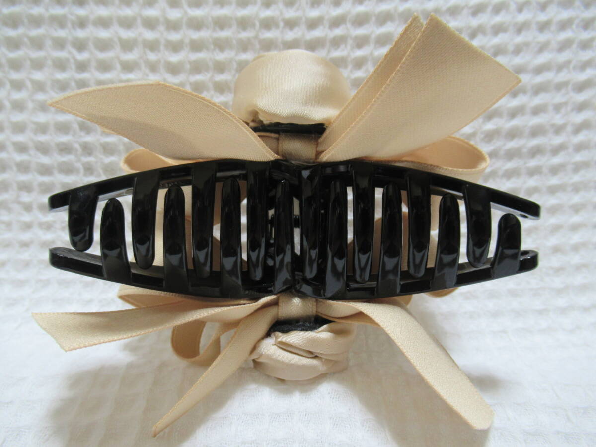 ベージュ系色(マキバラ・リボン)付き ループ型バンスクリップ
