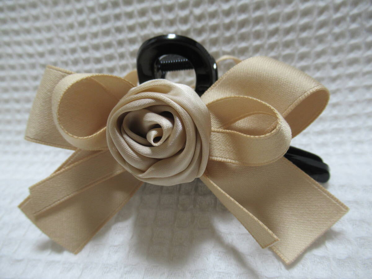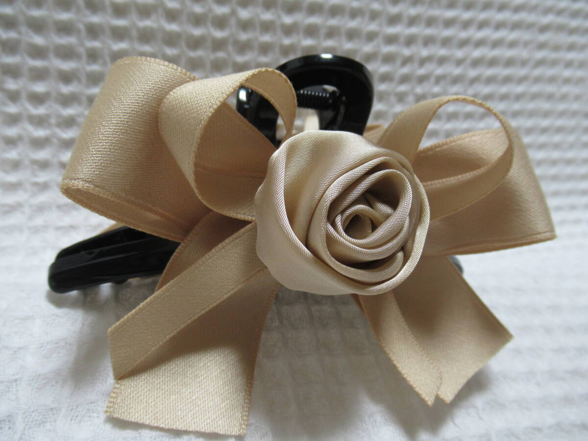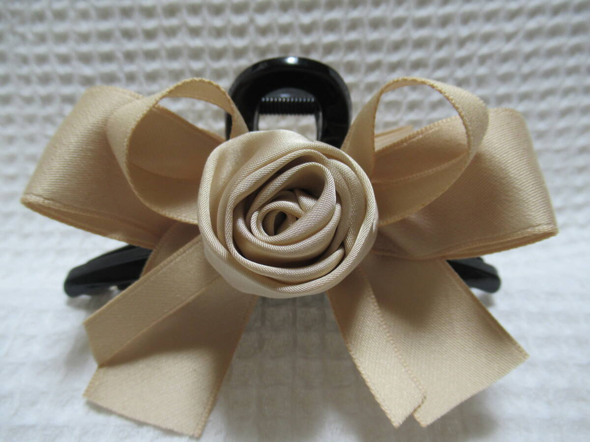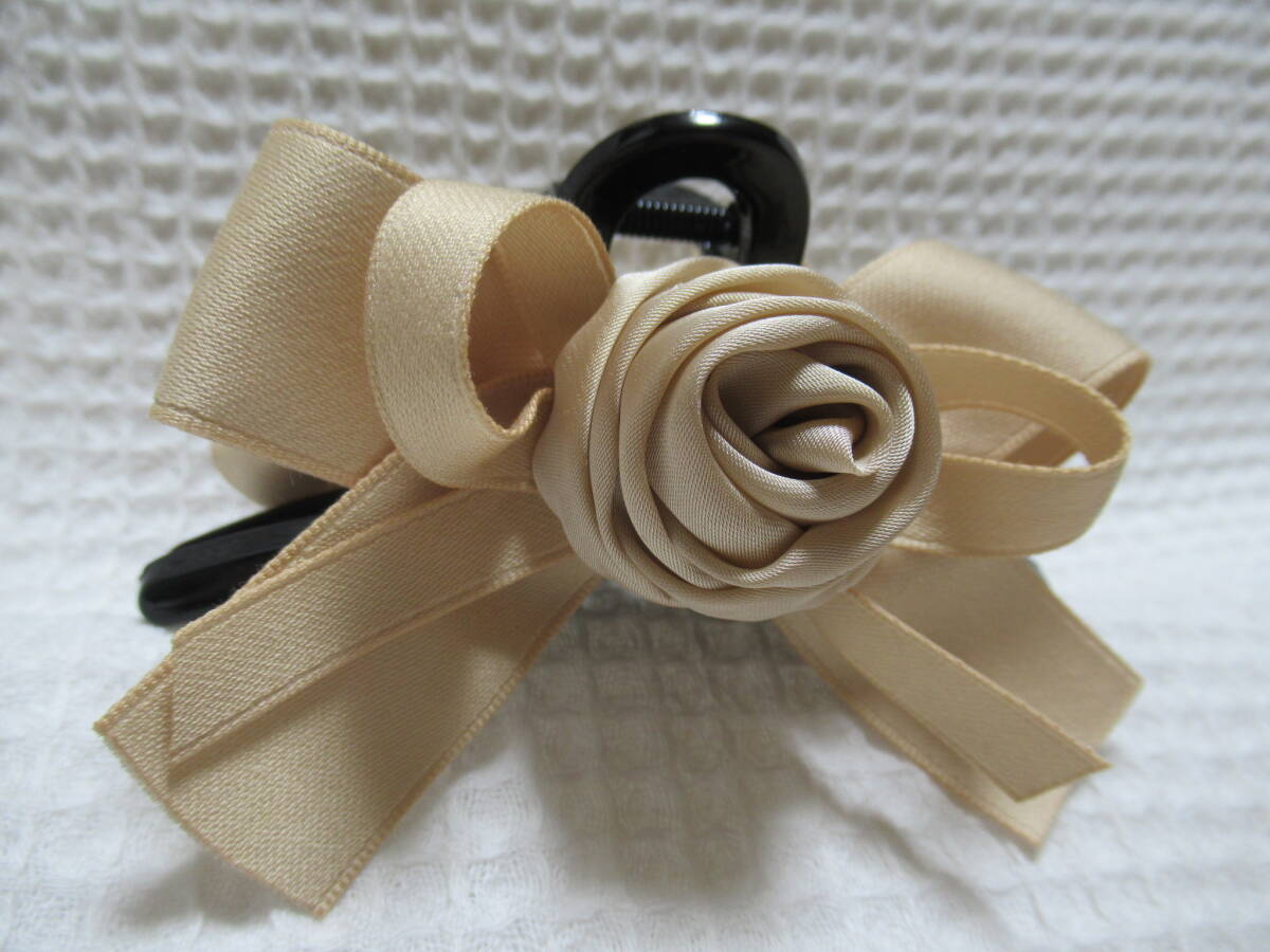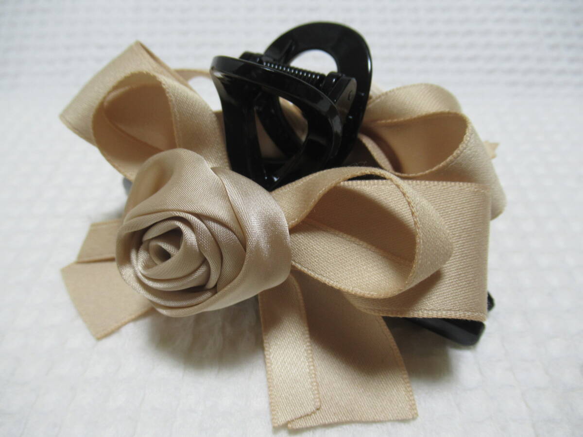 ベージュ系色(マキバラ・リボン)付き ループ型バンスクリップ
