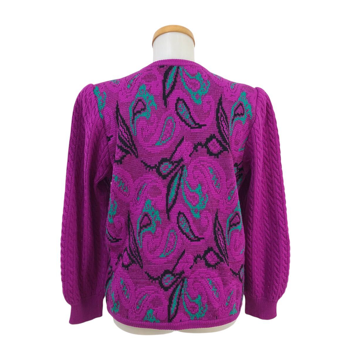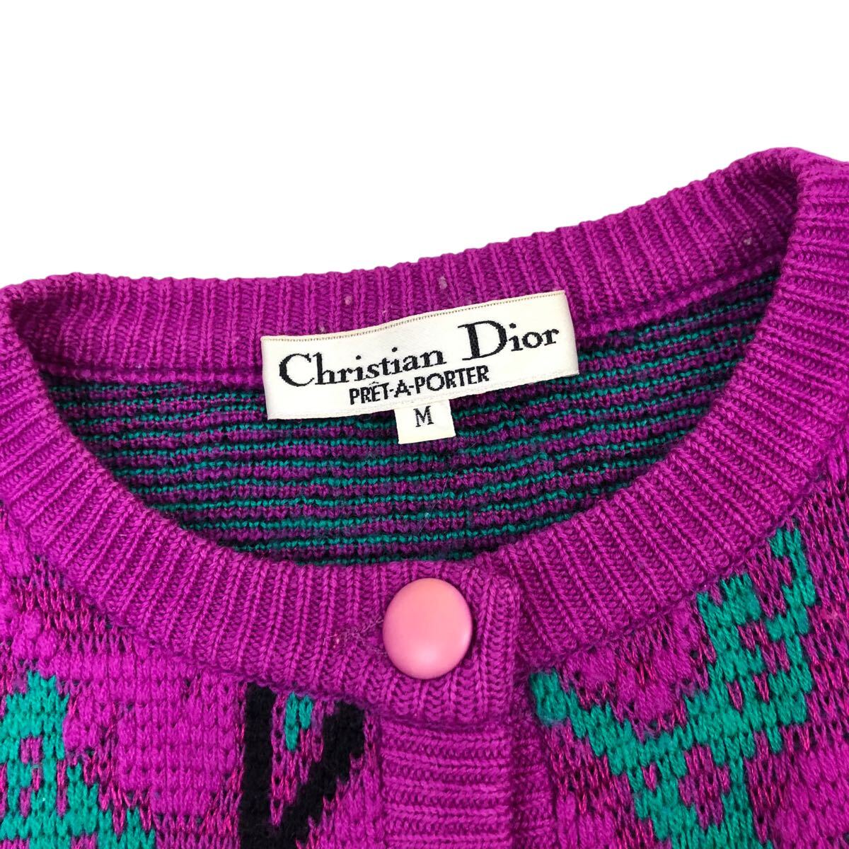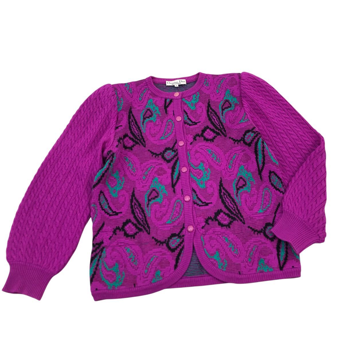 10m658-14 Christian Dior クリスチャン ディオール ペイズリー柄 ジャガード ニット カーディガン カーデ 羽織り トップス パープル系 M