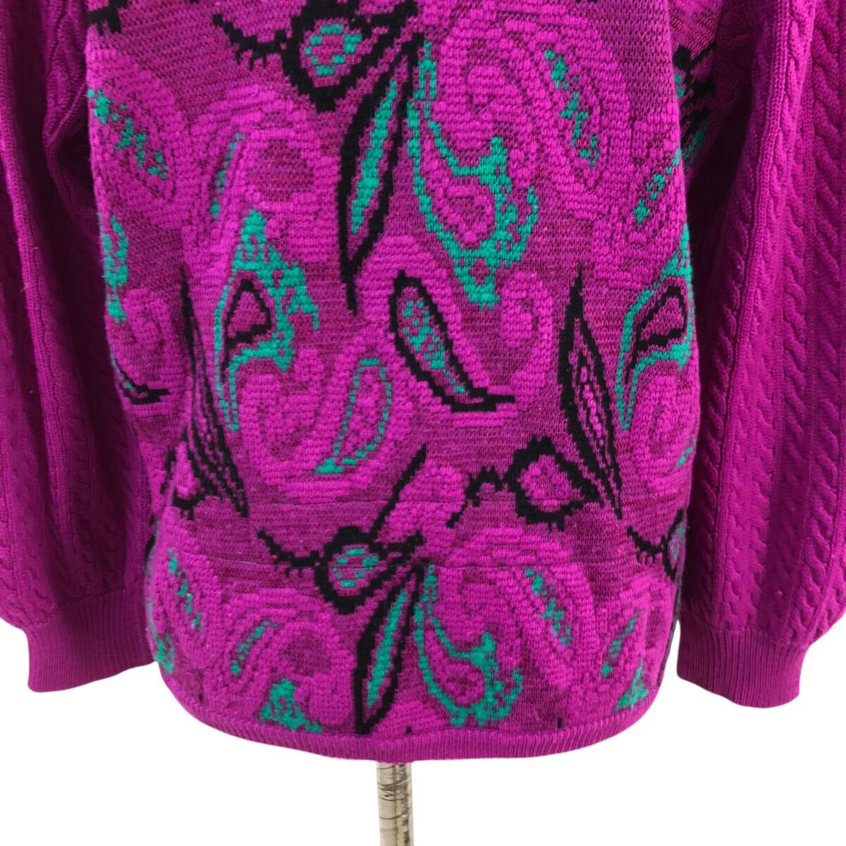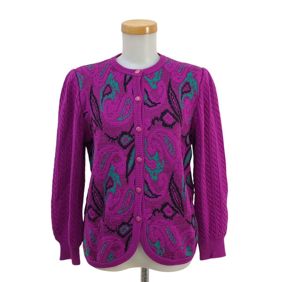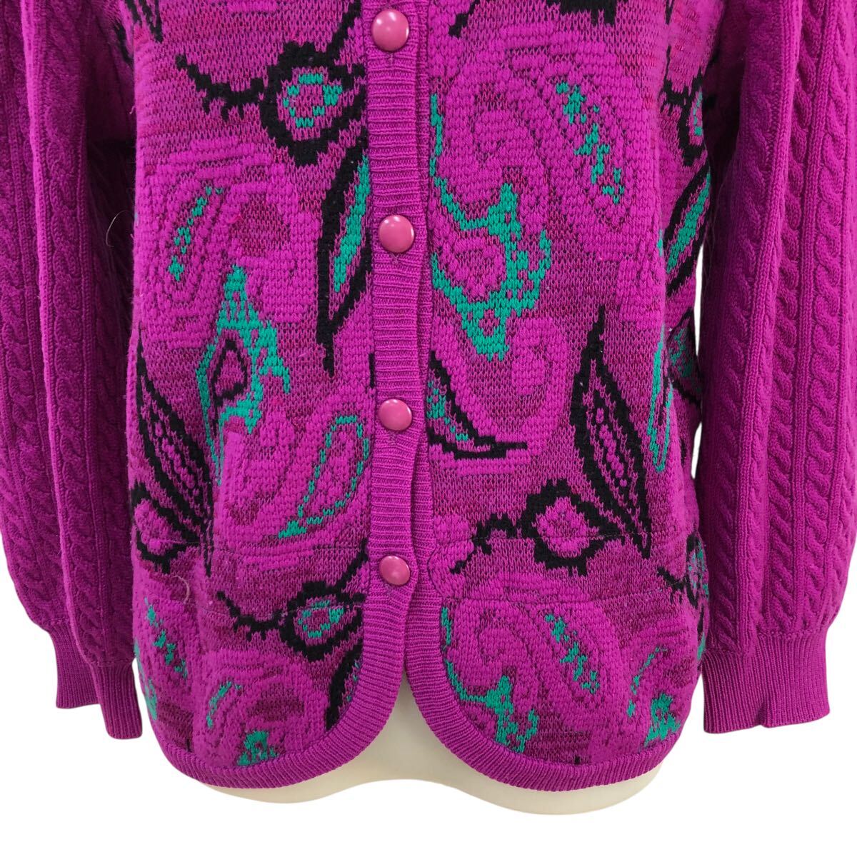 10m658-14 Christian Dior クリスチャン ディオール ペイズリー柄 ジャガード ニット カーディガン カーデ 羽織り トップス パープル系 M