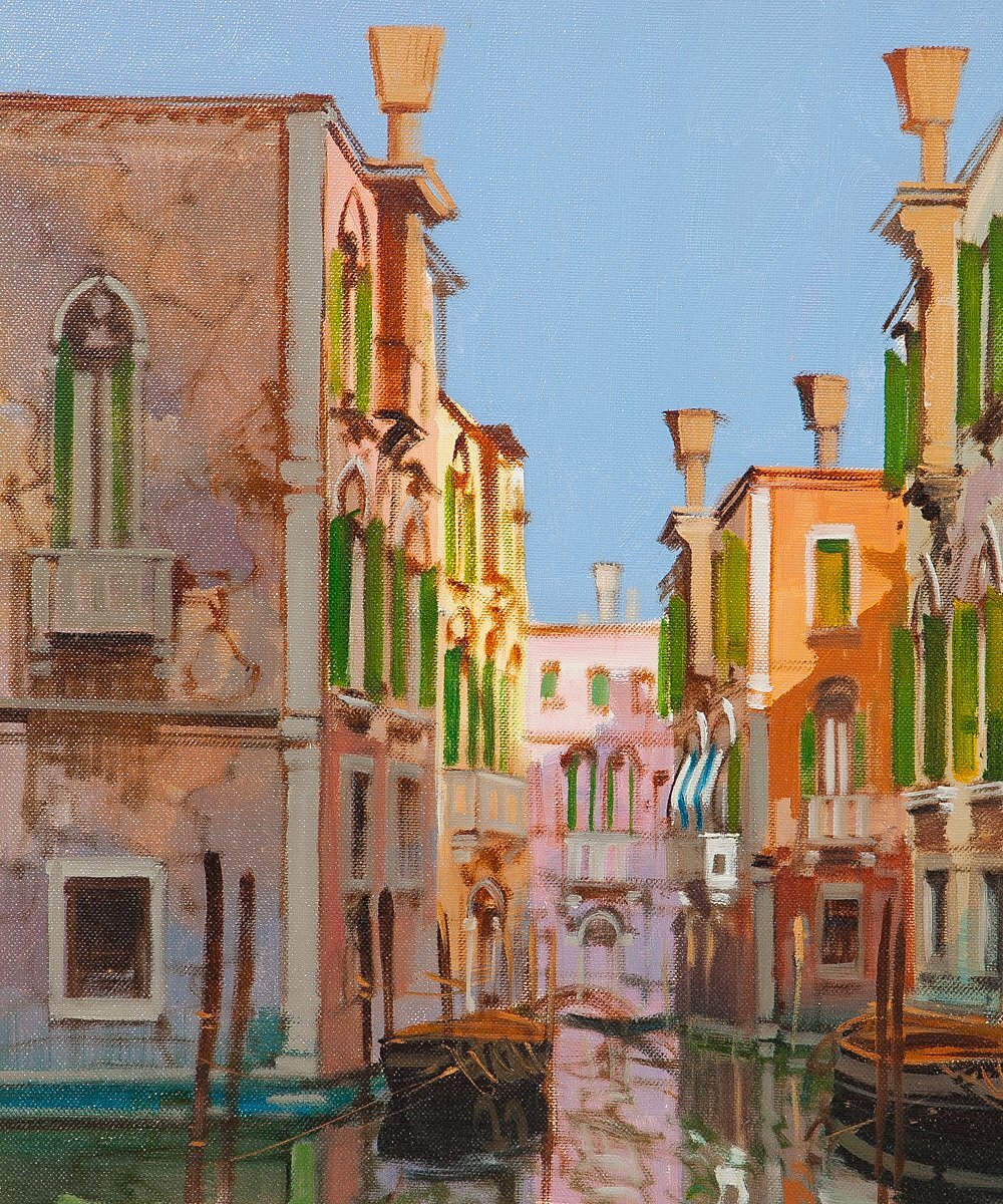 1947年イタリア、ナポリ生まれ、ナポリにおいて絵画を学ぶ、その後ベニスに移り住み、キャリスタ油彩を習得し、本格的な制作活動を展開する。1975年ナポリ・ポッツォーリ国際賞を受賞し、画家としての地位を確立する。 以降、1976年にはローマ・アッツーラ賞、1980 年キャリズモ賞、1983年、ローマ・海の国際展における1等賞等を受賞する。彼が描く明るく、繊細な世界は、「ベニスの永遠なる光景を描く、最も素晴らしいイタリアの芸術家の一人」として、定評がある。