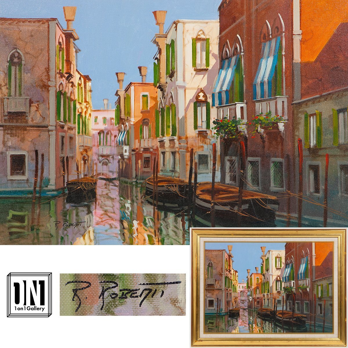 【1on1】真作 ロベルト・ロベルティ 『ヴェネツィア』 油彩 キャンバス 20号 額装 / イタリアの巨匠 ナポリのポッツォーラ国際賞受賞