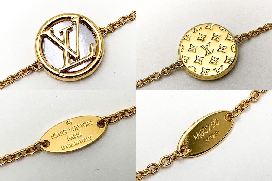 ルイヴィトンより、ブレスレットになります。LVサークルモチーフにマザーオブパールが使用されている上品なお品です。ロット番号はVA1200になります。ABランク。軽微な小傷がございますが、比較的綺麗なお品です。 | |
