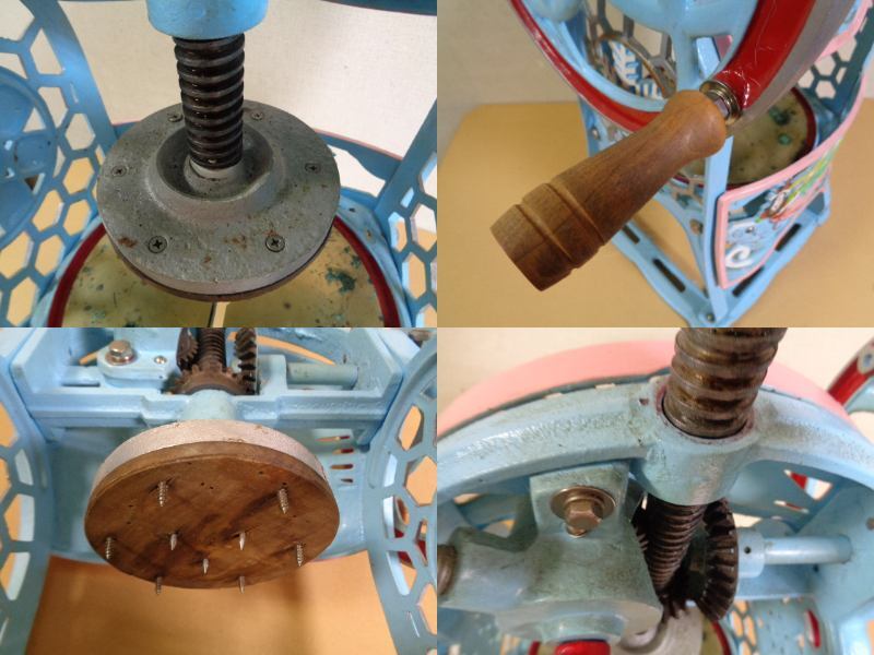 サイズ約、 全体 高68~81cm 幅34.5cm 奥行35.5cm  各部の動きはスムーズです。 氷置き幅 径22.5cm 高15.5cm  しみ汚れ、擦れ傷、色の剥がれ、緑青(画像10)後下面脚部、アングルの溶接剥がれが有ります。 発送はらくらく家財宅急便Aランク160サイズ(ドライバースタッフ2人、設置まで可能)参考送料 北海道札幌3.660円 宮城県3.260円 東京都3.550円 大阪府4.030円 福岡県5.170円。発送は迅速に対応いたしますが地域によって到着まで数日~1週間かかります。古い物ですのでご理解いただける方、終了後2日以内の返信、入金頂ける方お願い致します。商品到着後、受け取り完了の操作は必ずお願い致します。