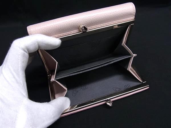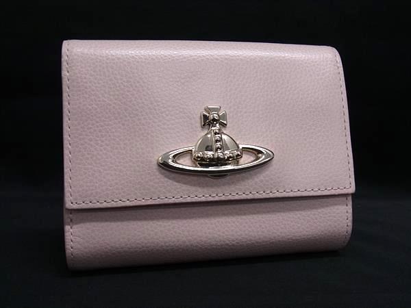 1円 ■極美品■ Vivienne Westwood ヴィヴィアンウエストウッド オーブ レザー がま口 三つ折り 財布 ウォレット 札入れ ピンク系 BQ1665