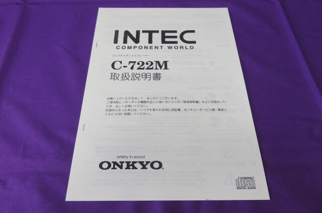 ONKYO CDプレイヤー C-722M、取扱説明書(A4コピー)(動作確認、メンテナンス済)管理番号OCT-2
