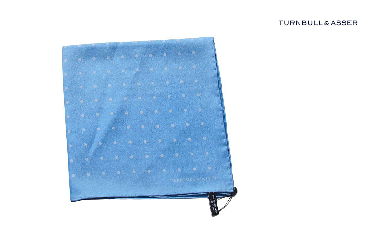 送料無料★新品|未使用|ターンブル&アッサー|Turnbull & Asser|04|ドット柄シルクポケットチーフ(TUR/ブルー)