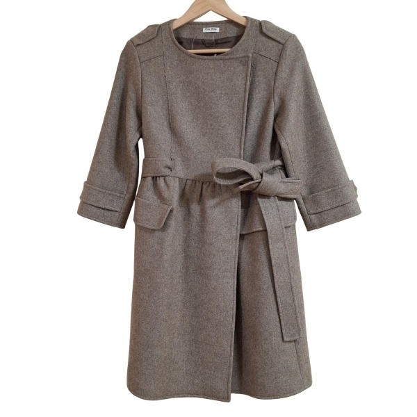 ミュウミュウ miumiu サイズ38 S - ベージュ×グレー レディース 長袖/冬 コート