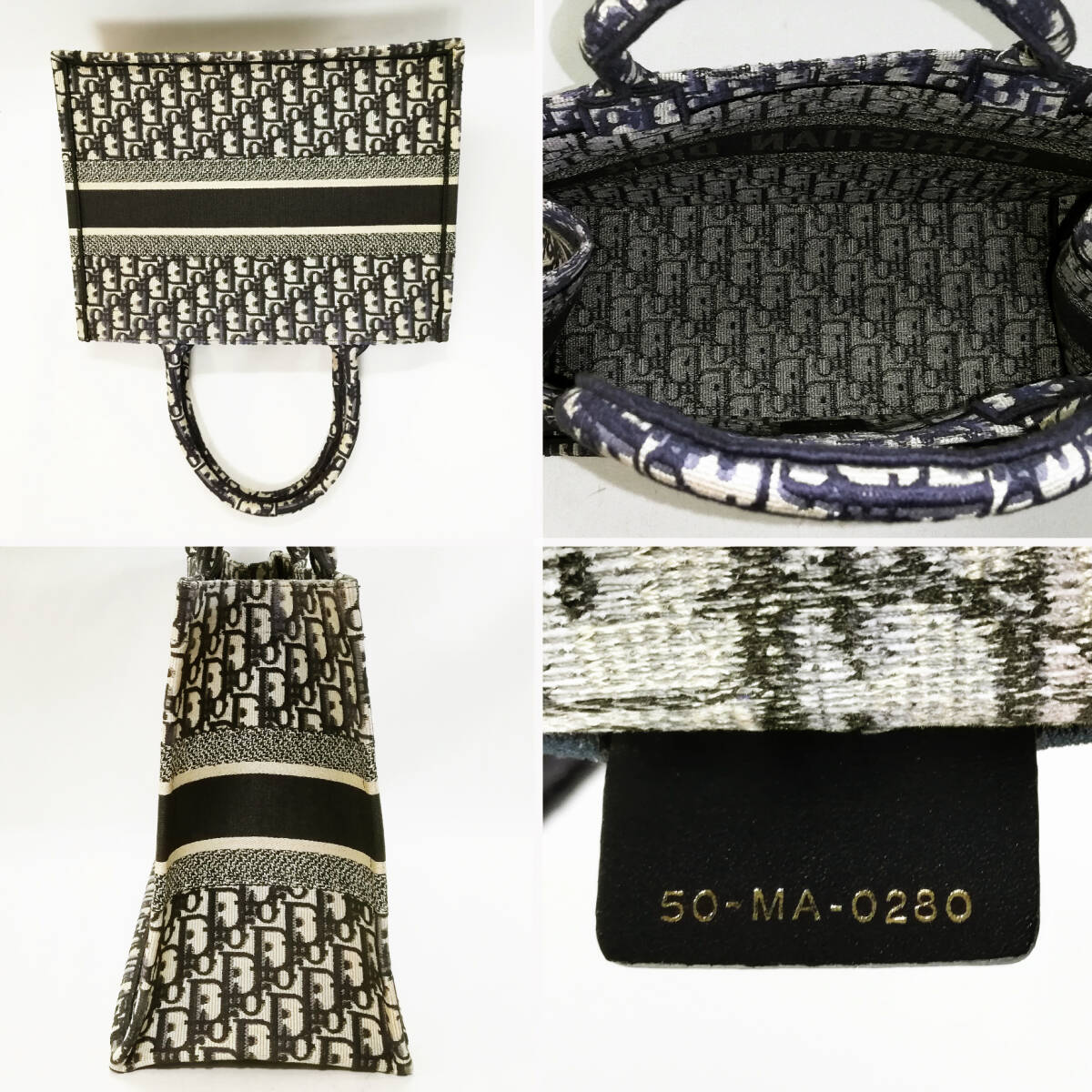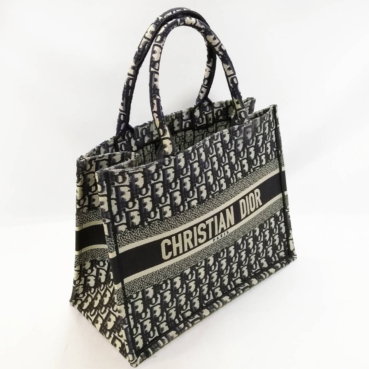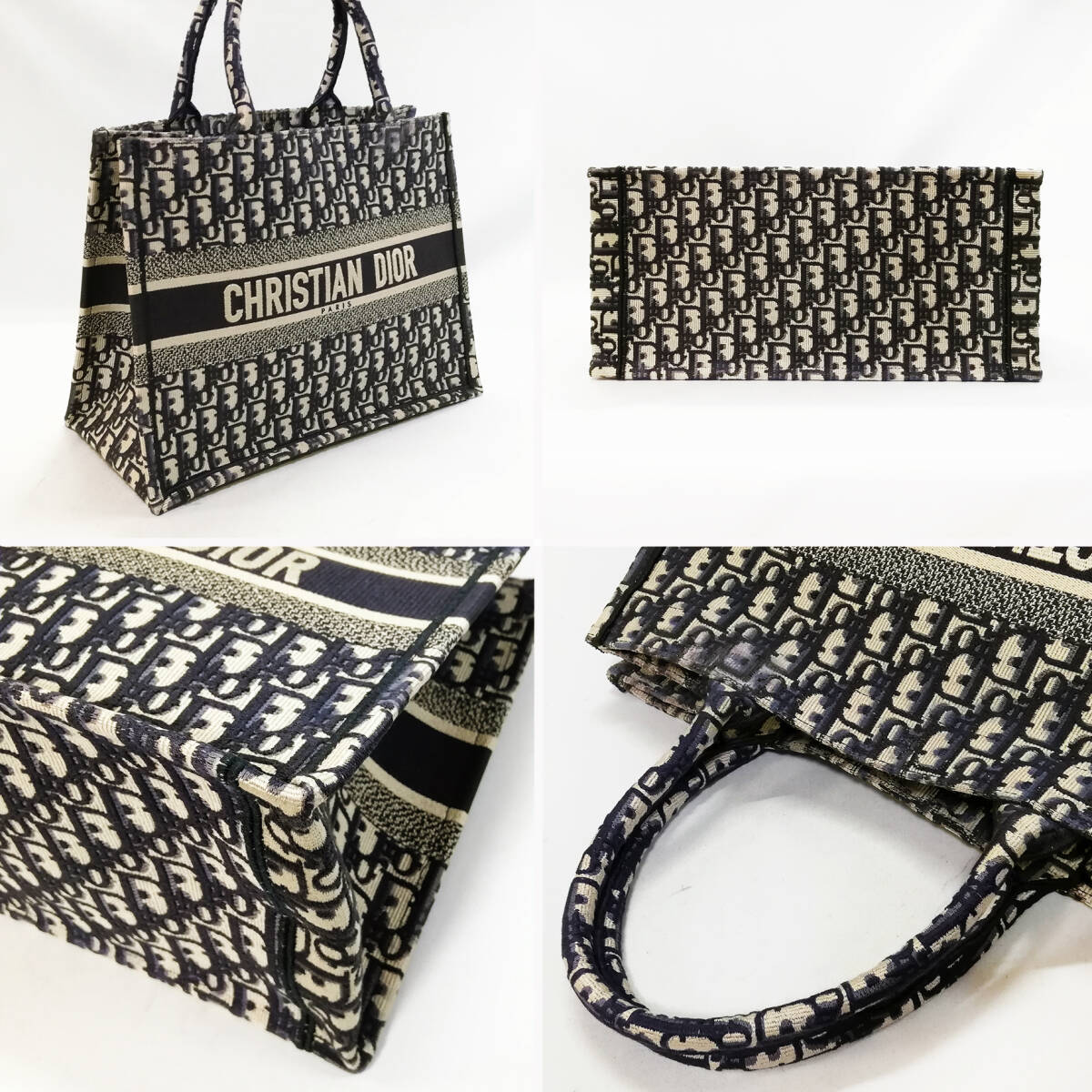 【美品級】クリスチャン・ディオール キャンバスオブリーク ブックトート ハンドバッグ ブルー 定番 可愛い 大容量【送料無料】990