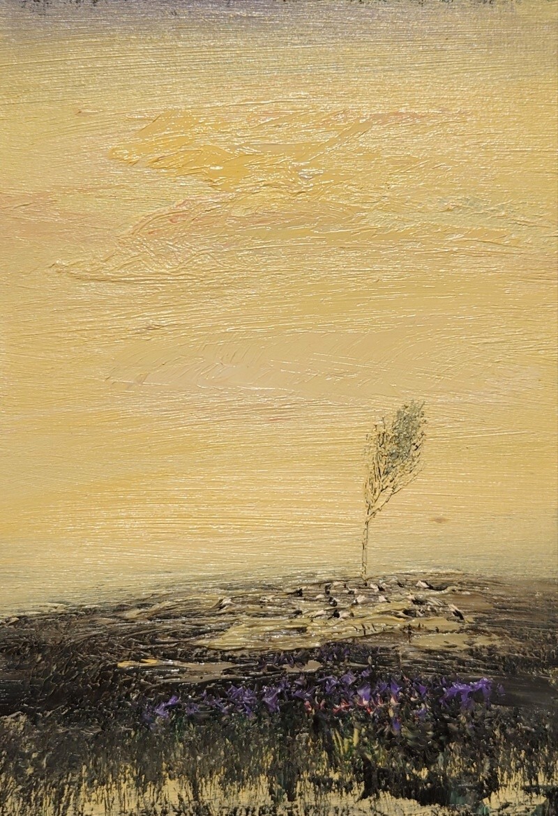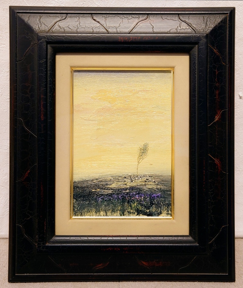 真作保証 片山弘明「黄昏」油彩 SM号 一枚の繪取扱作 古径額 厚塗り 独自の世界観 光陽会会員 皇室御用達 タトウ箱 ※北海道 ラベンダー