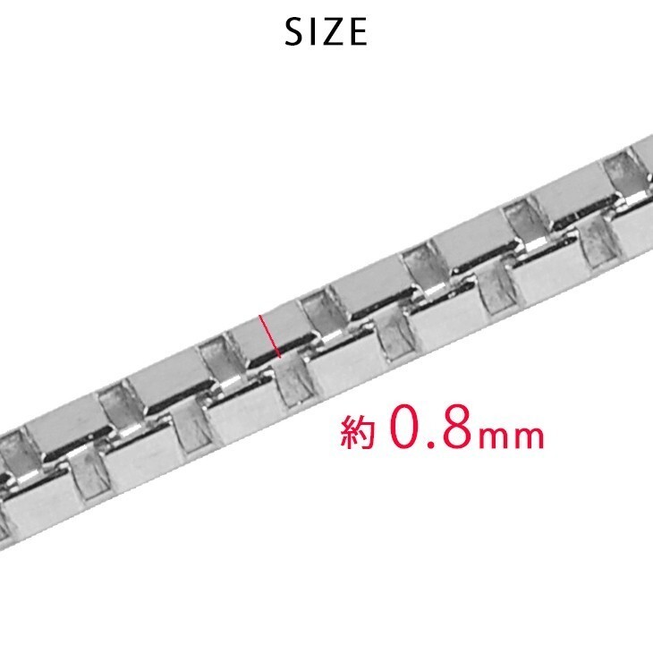 | サイズ | チェーン:スライドアジャスター付 長さ 55 cm 幅 約 0.8 mm 留め具:※ペンダントトップを通す方です。 幅 約 2.7 mm 厚み 約 0.2 mm 重量 約 2 g前後 ※重量は多少前後致しますが、ご了承ください。 |