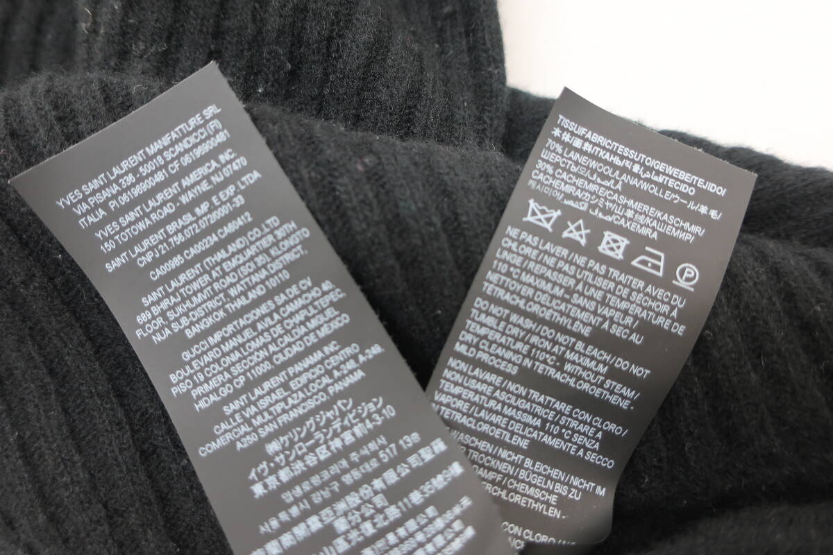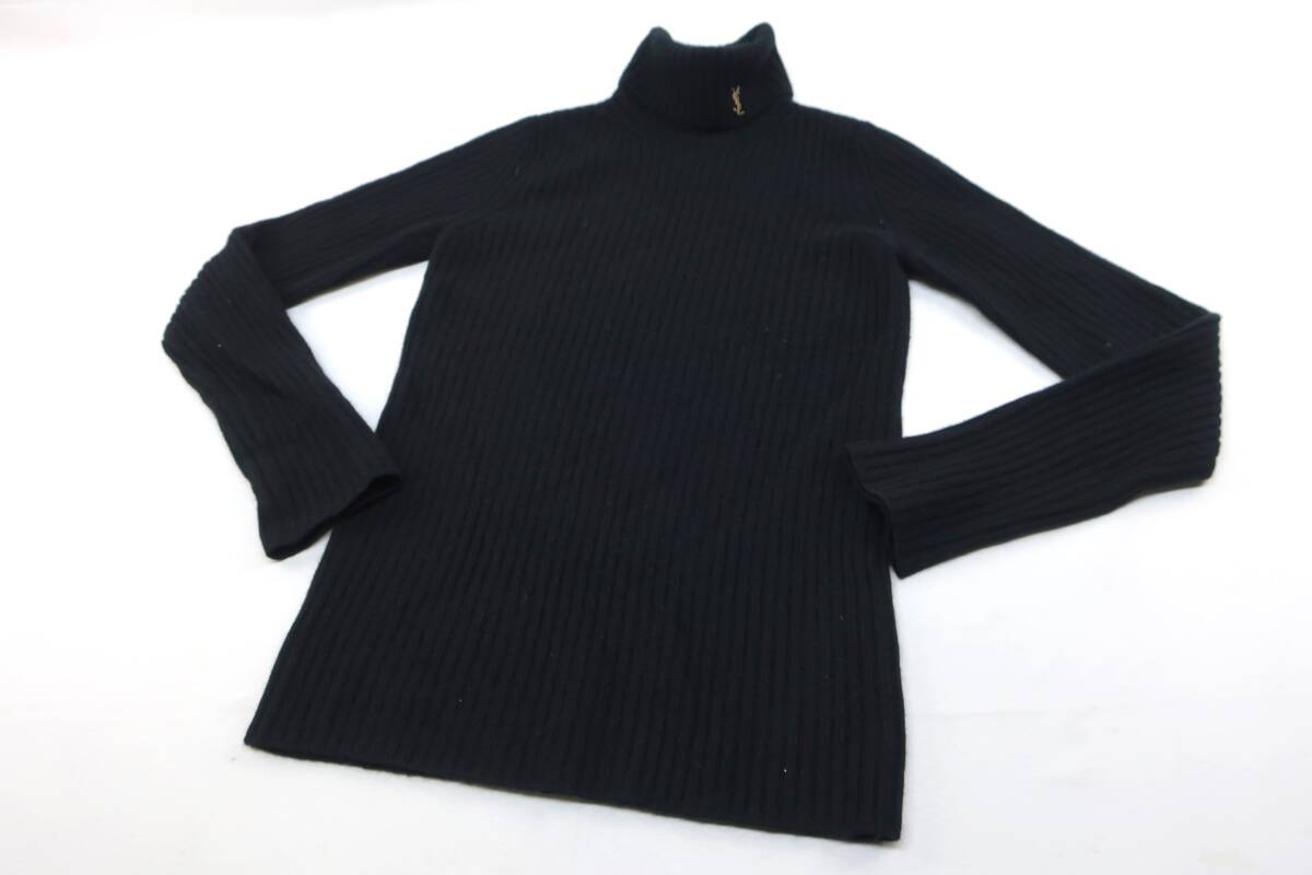 ★【S送900円】2774 難有 SAINT LAURENT サンローラン イタリア製 メンズ ハイネックセーター 黒 M 165/88Y 羊毛×カシミヤ