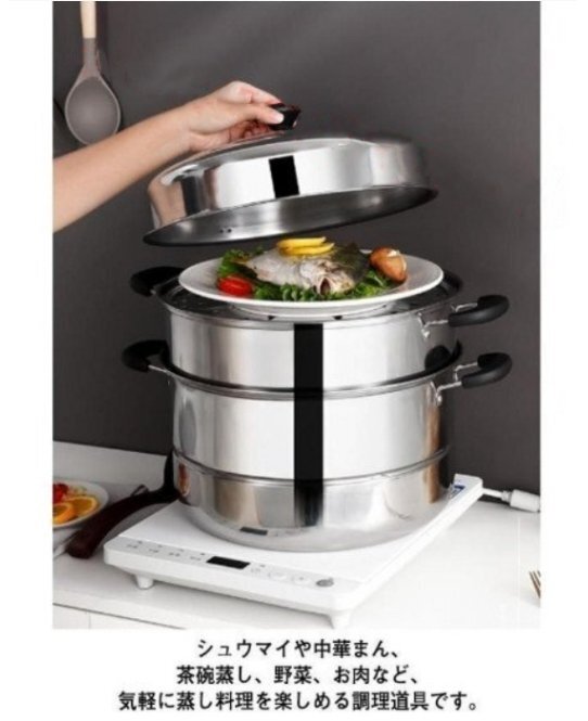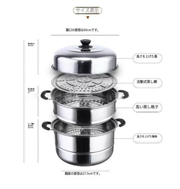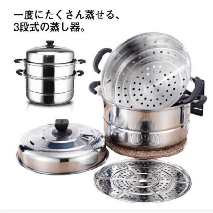 蒸し器 三段 30cm 大容量 ステンレス せいろ 蒸籠 IH対応 ガス火対応 蒸し鍋 スチーム調理器 両手鍋 蓋付き ステンレス鍋 調理鍋 蒸し料理