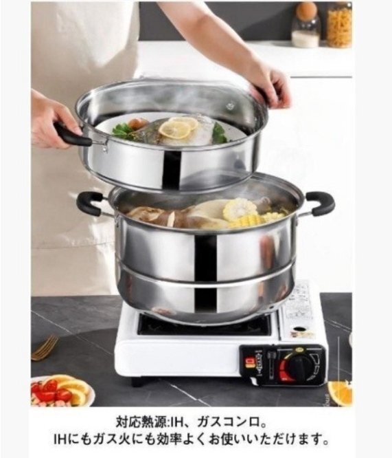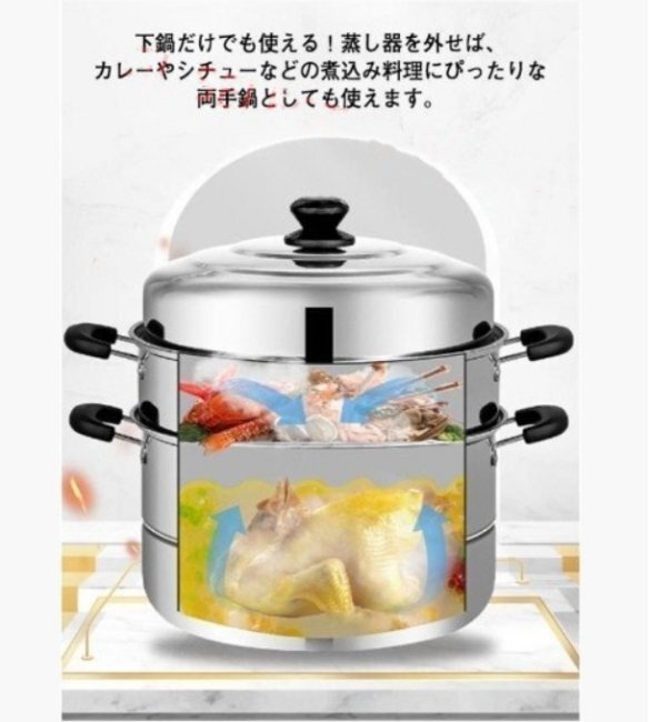 上下鍋を組み合わせて蒸し料理に、下鍋だけでゆで物や煮物料理に
