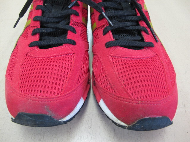 メーカー:アシックス・種目:ランニングシューズ・品名:ライトレーサーRS5・品番:TJL432・カラー:2394レッド×ゴールド・サイズ:28.5・ベトナム製・重さを量ると片足232gでした。状態は中古品です。使用感・汚れはありますがあまり使っていないので大きな痛みや汚れはではないと思います。ソールの減りもごくわずかです。画像でご確認ください。よろしくお願いします。
