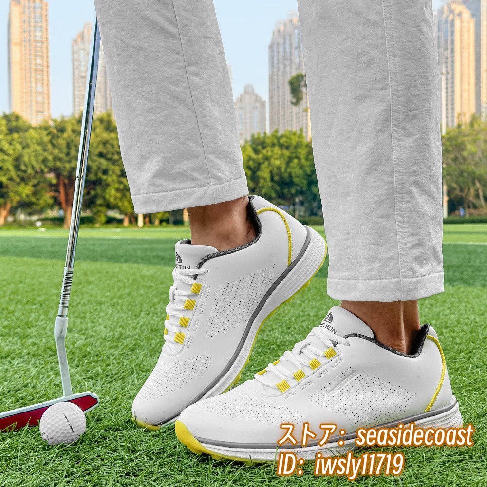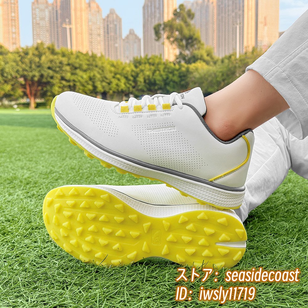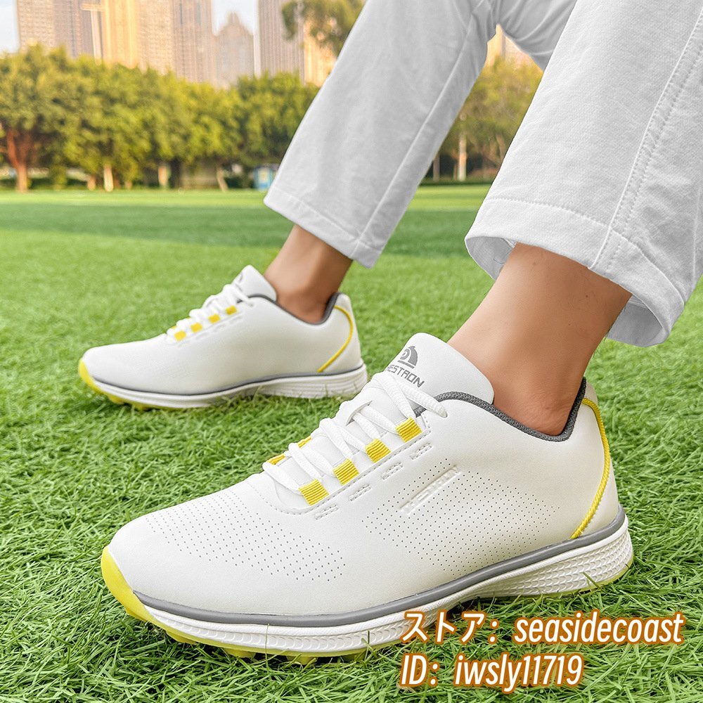絶賛◆新品 ゴルフシューズ 通気性 スポーツシューズ メンズ 男女兼用 運動靴 耐久性 スニーカー フィット感 防滑 耐磨 白*黄 26.5cm