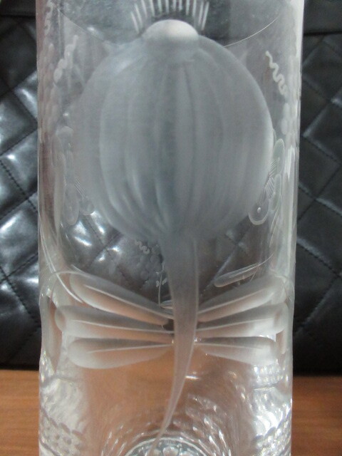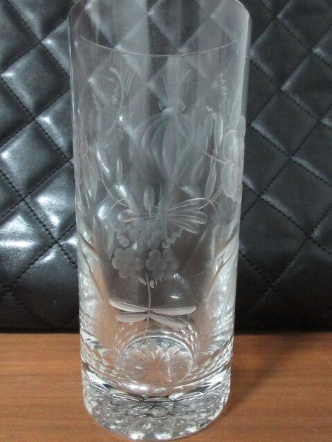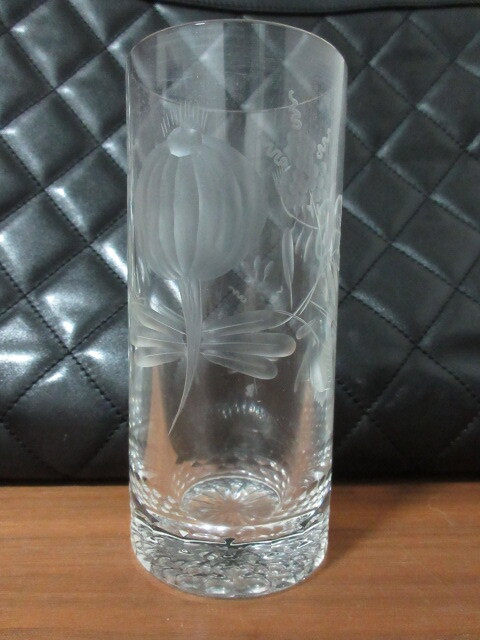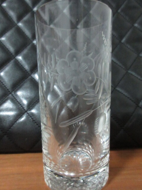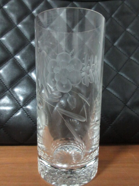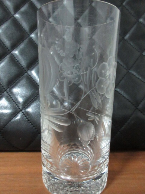 マイセンクリスタル フラワー ハイボールグラス クリスタルガラス 作者サイン 30年~40年前の品